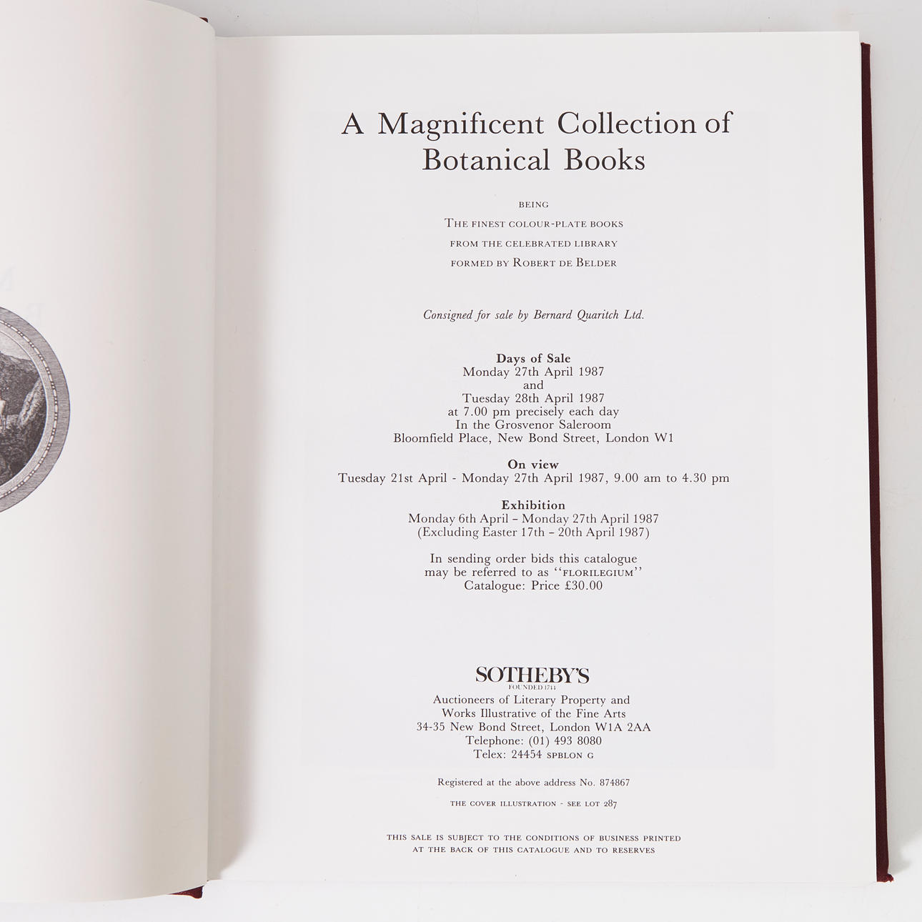 A few more consists of: A magnificent Collection of Botanical Books (The Robert de Belder auction catalogue, Sotheby's 1987, with price list); The Magnificent Botanical Library of the Stiftung fur Botanik Vaduz Lichtenstein collected by the late Arpad. I pluck. I-III (Sotheby's auction catalogue 1975-76, with price lists)