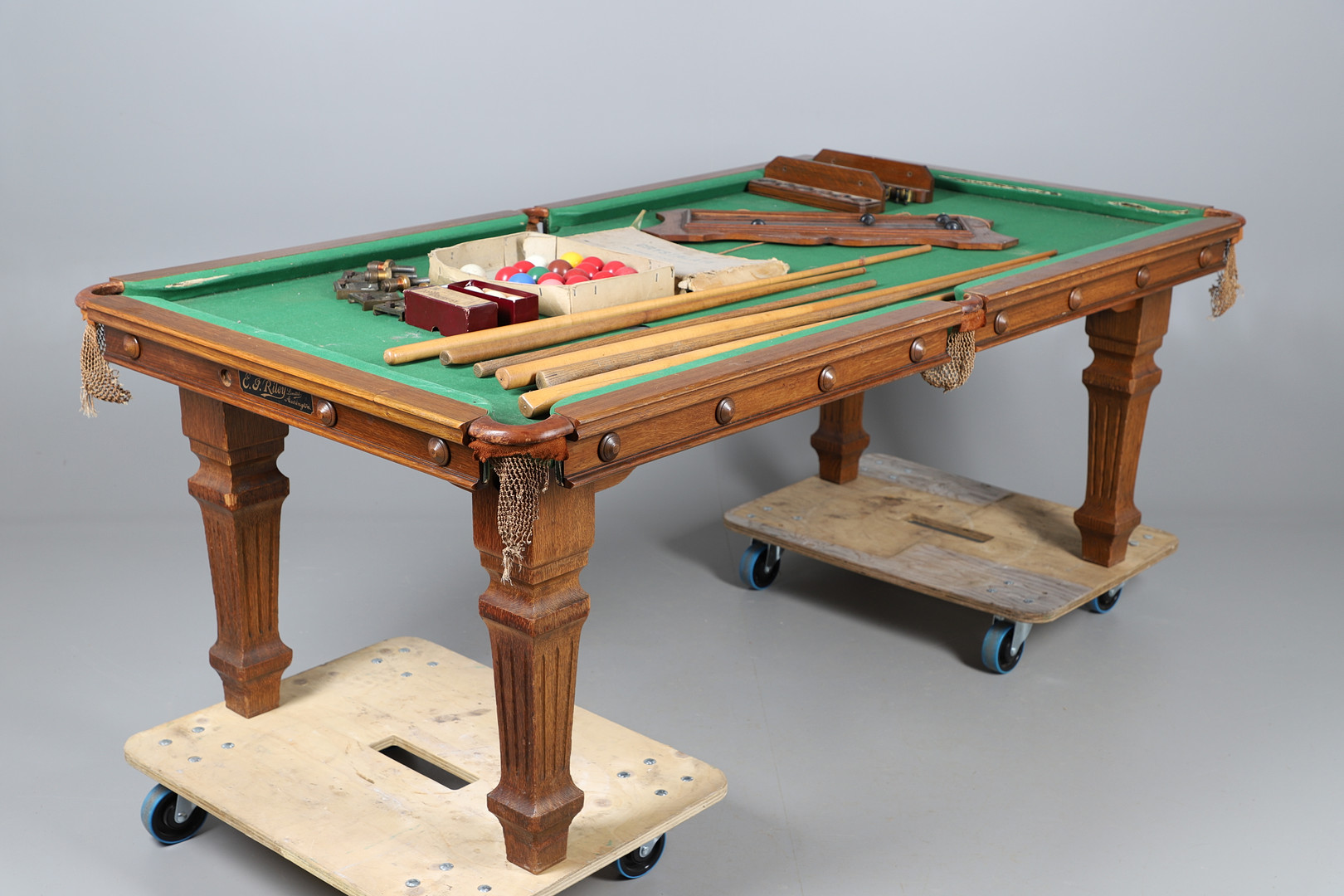 3368969. E J RILEY LTD, ACCRINGTON. A HALF SIZE SLATE BED SNOOKER TABLE CONVERTABLE TO A DINING TABLE.