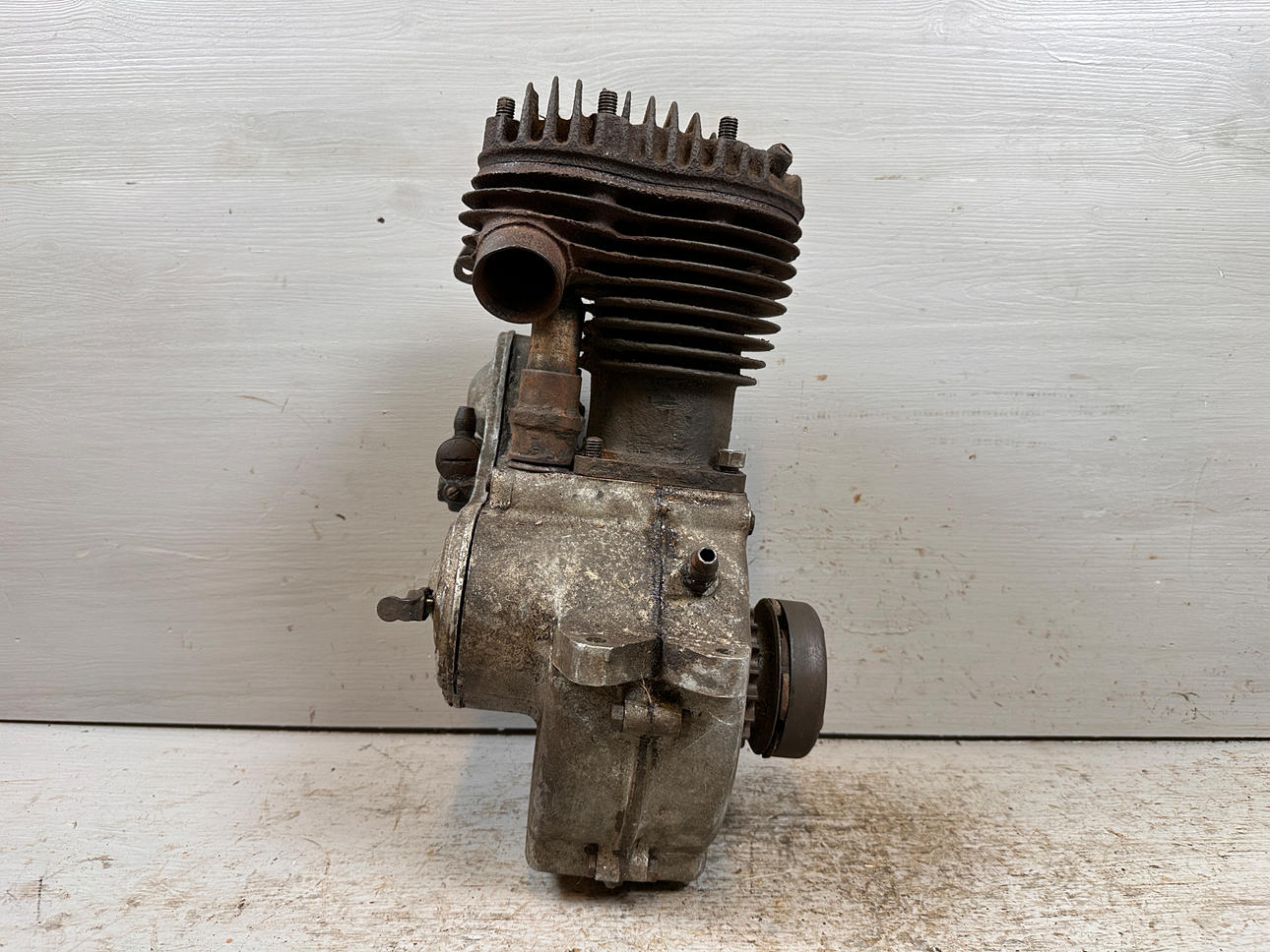 Engine goes around. Missing parts, including piston. Unrenovated condition.