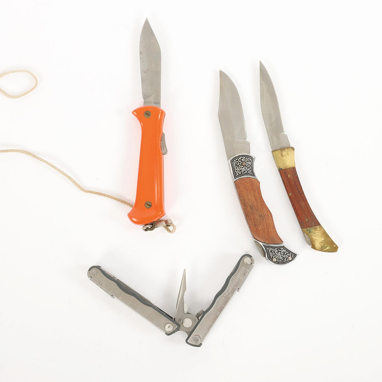 3377876. MULTITOOL & POCKET KNIVES, 4 pieces, including Leatherman Blast.