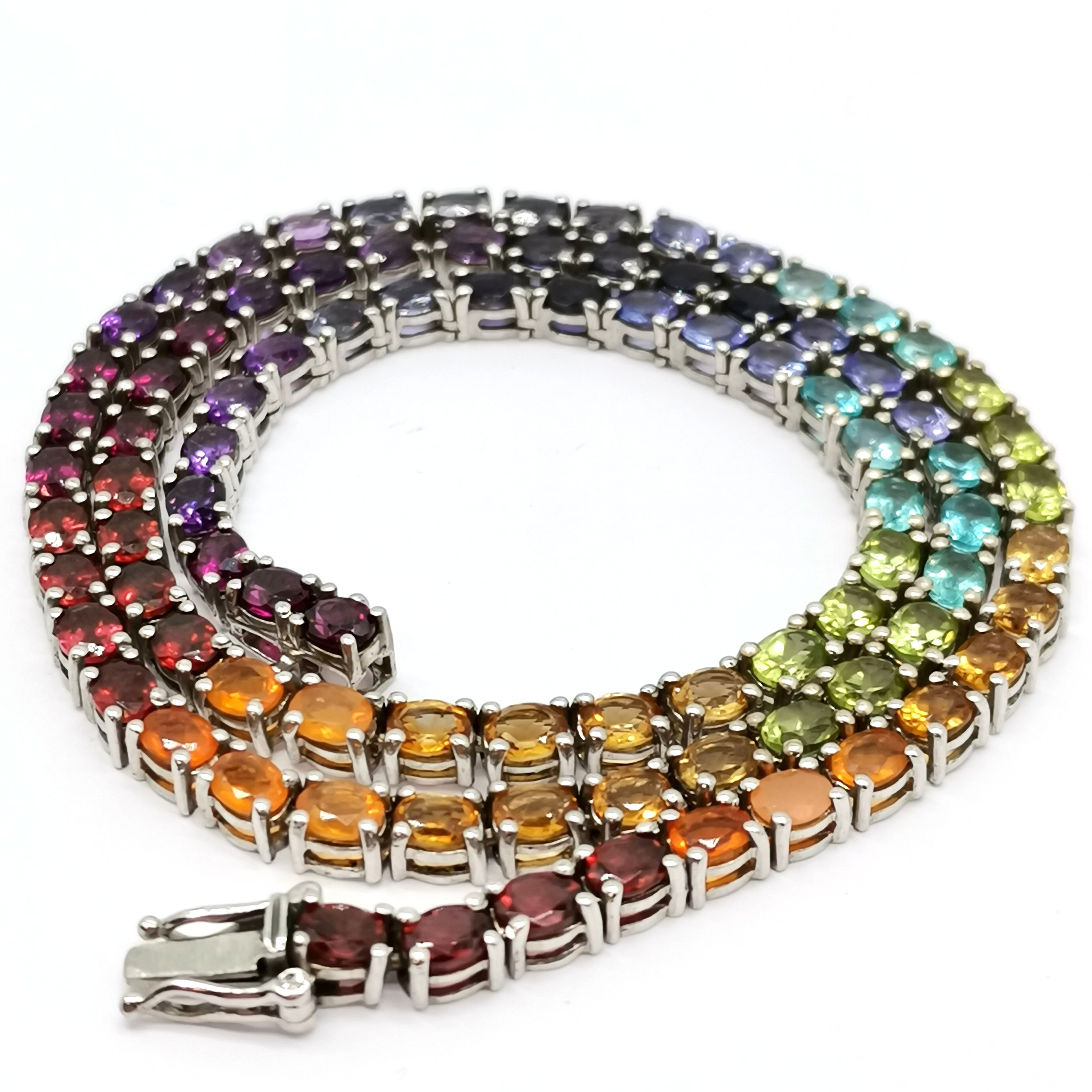 3377972. INDIAN STERLING SILVER MULTI-COLOUR STONE SET NECKLACE.