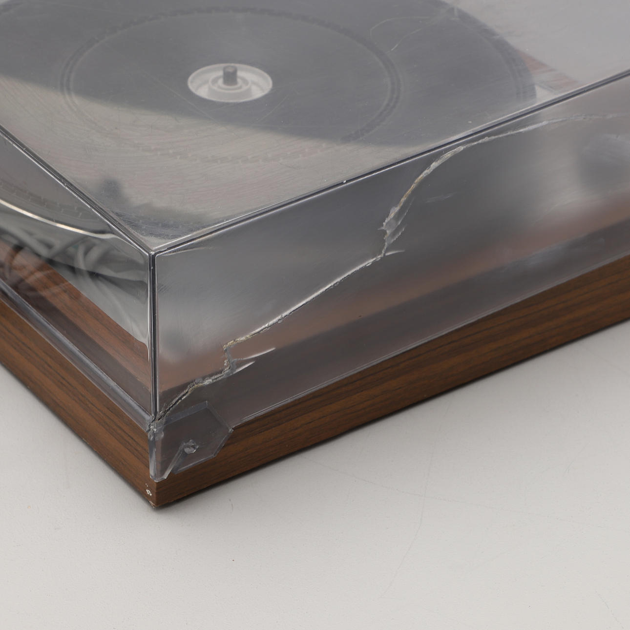 Normal wear and tear. Lid with damage, repaired crack and attachment missing. No functional warranty is provided.
