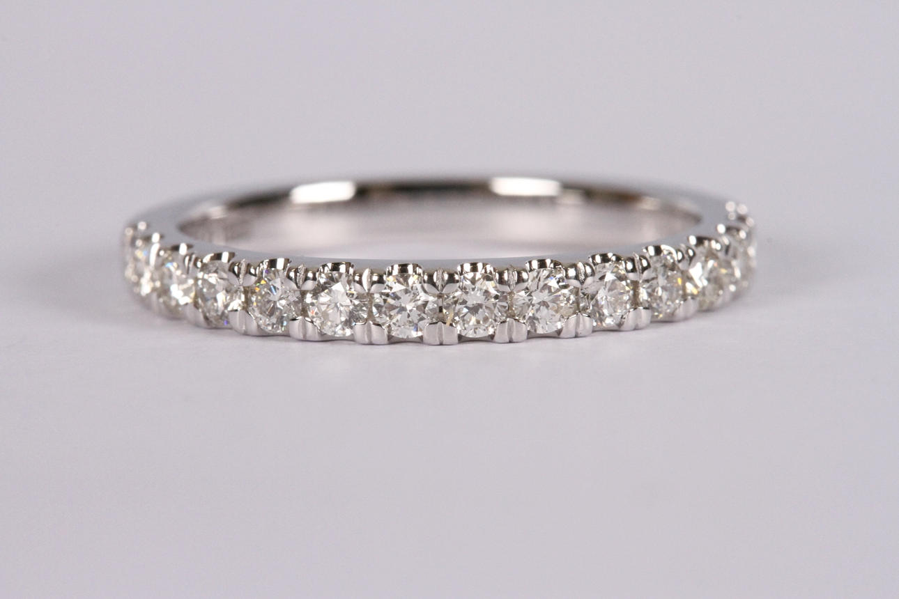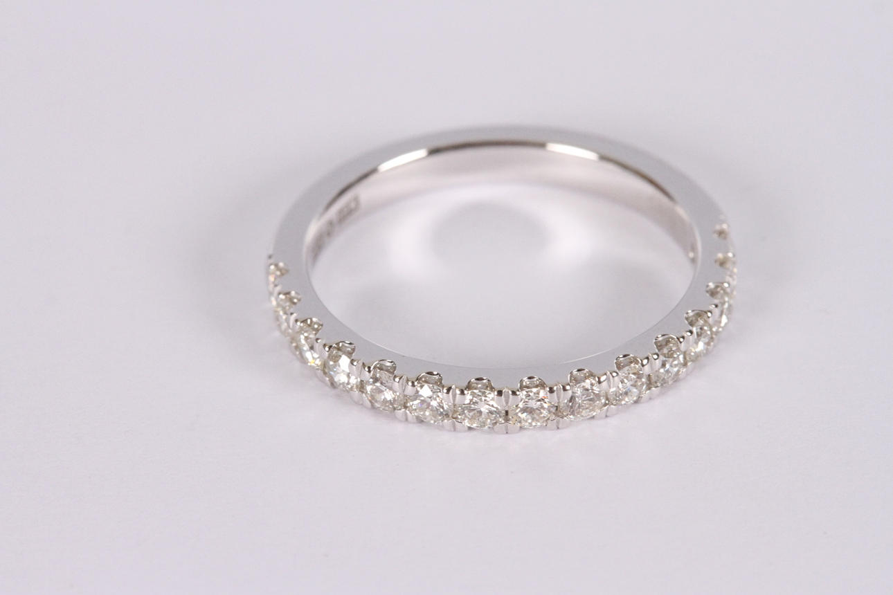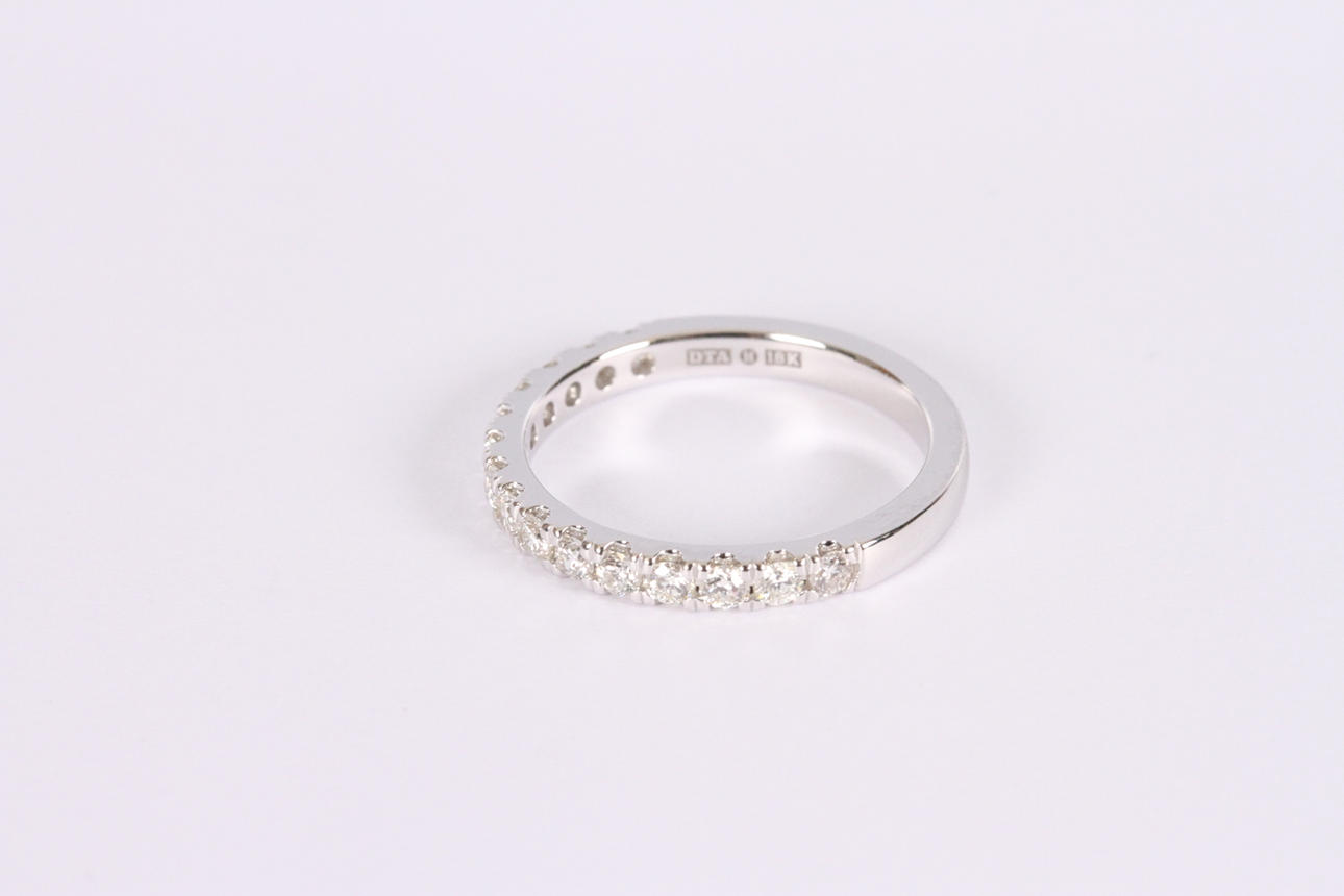 Set with 15 brilliant cut diamonds totalling 0,48ct approx Wesselton-Top Wesselton/VS-SI, weight 2,8 grams, size 52.