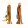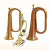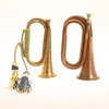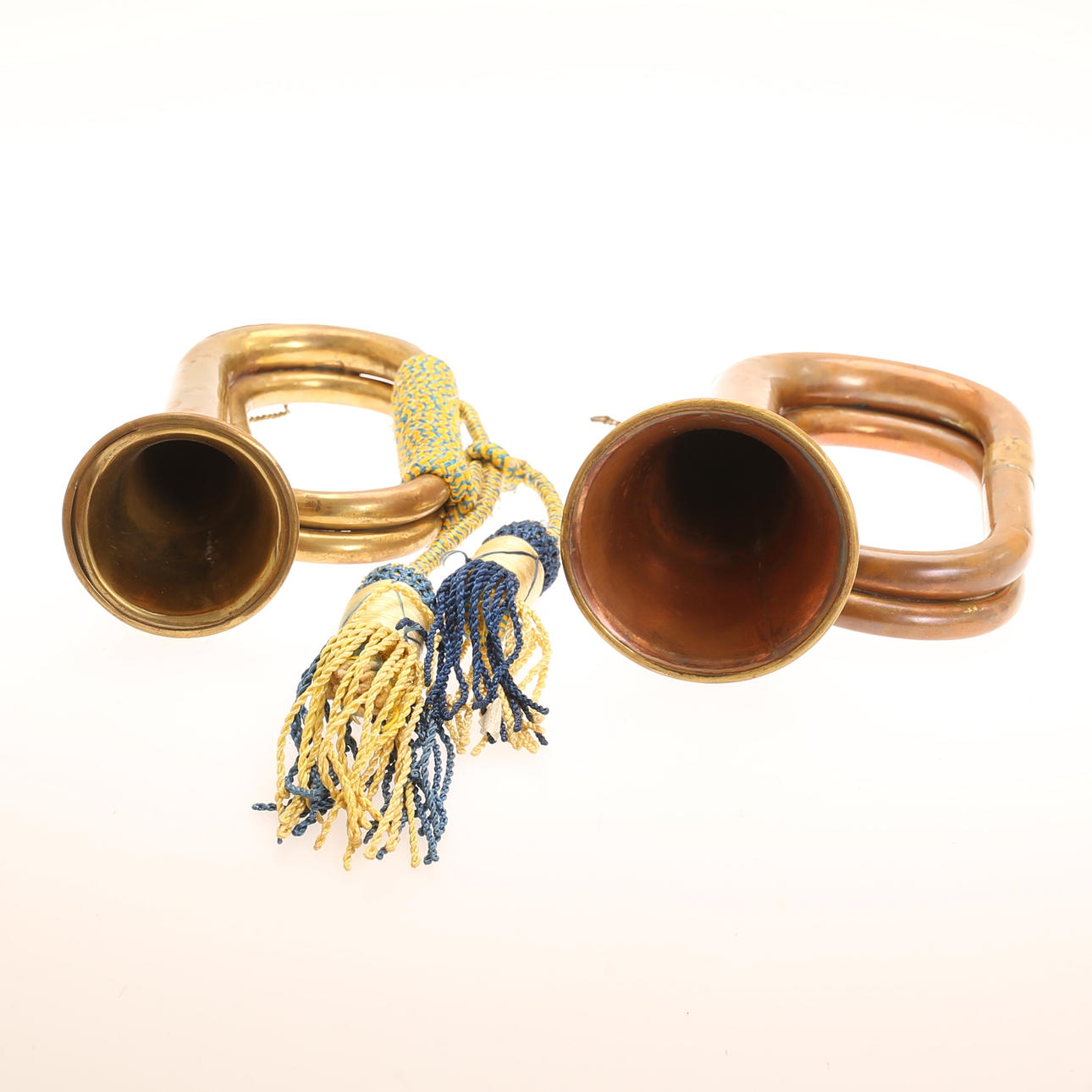 2 bugle horns, one in copper, one in brass with portepe. 19th century.