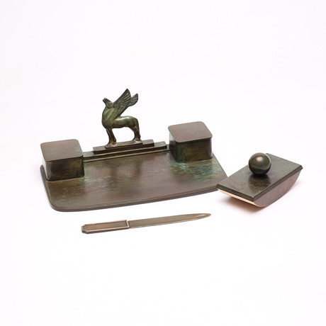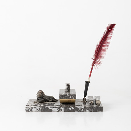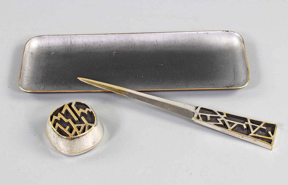 Pen stand and paper stand. Width 15.5 cm.