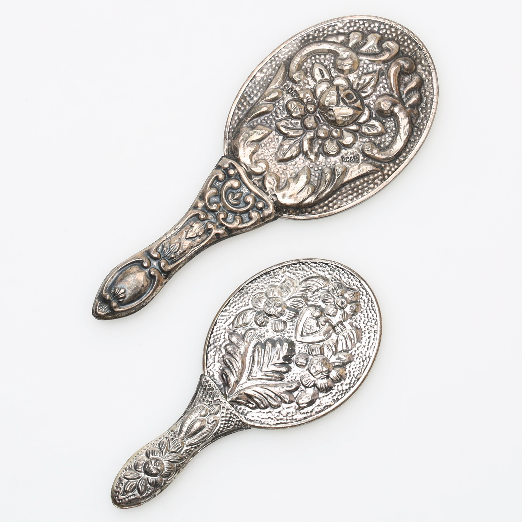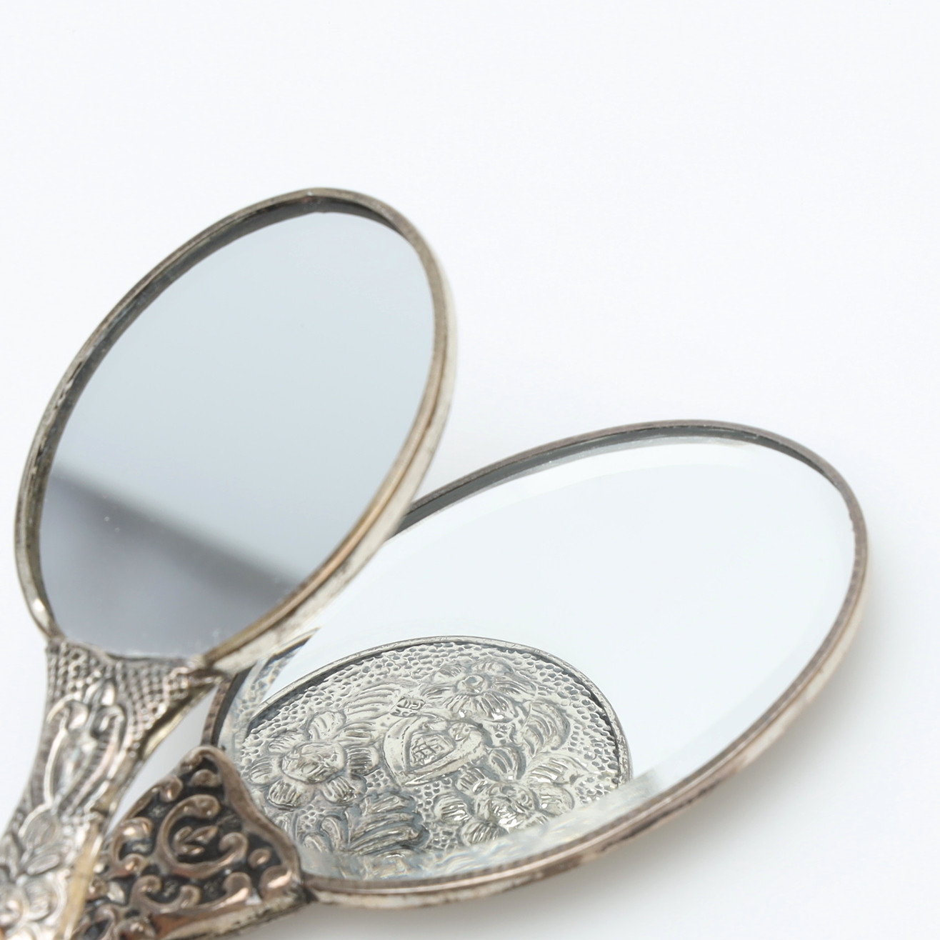 3389087. HAND MIRRORS, minature, silver.