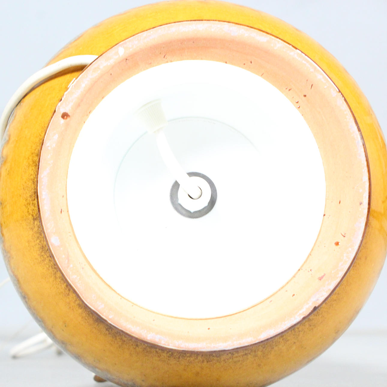 Lamp base made of ochre-colored glazed ceramic, speckled overglaze, provided with three focal points,