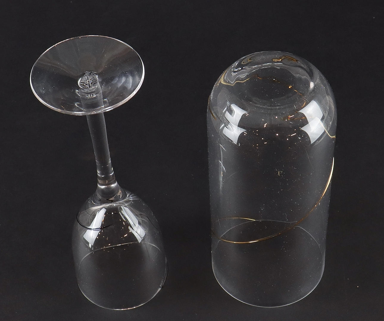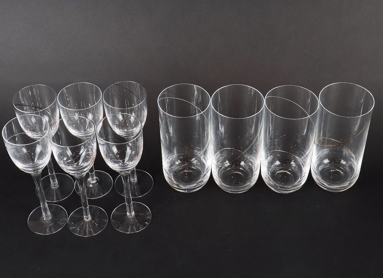 6 wine glasses height 16.5 cm, 4 with silver decor.