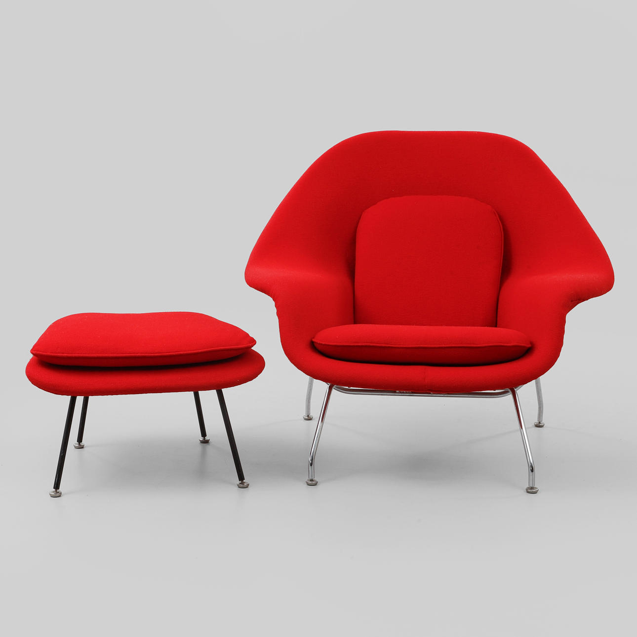 3392123. EERO SAARINEN. Armchair with footstool, “Womb chair”.