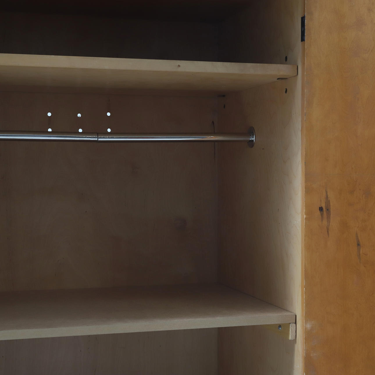 Three shelves and a clothes rack. Height excluding crown approx. 180 cm, width 70, depth 50 cm.