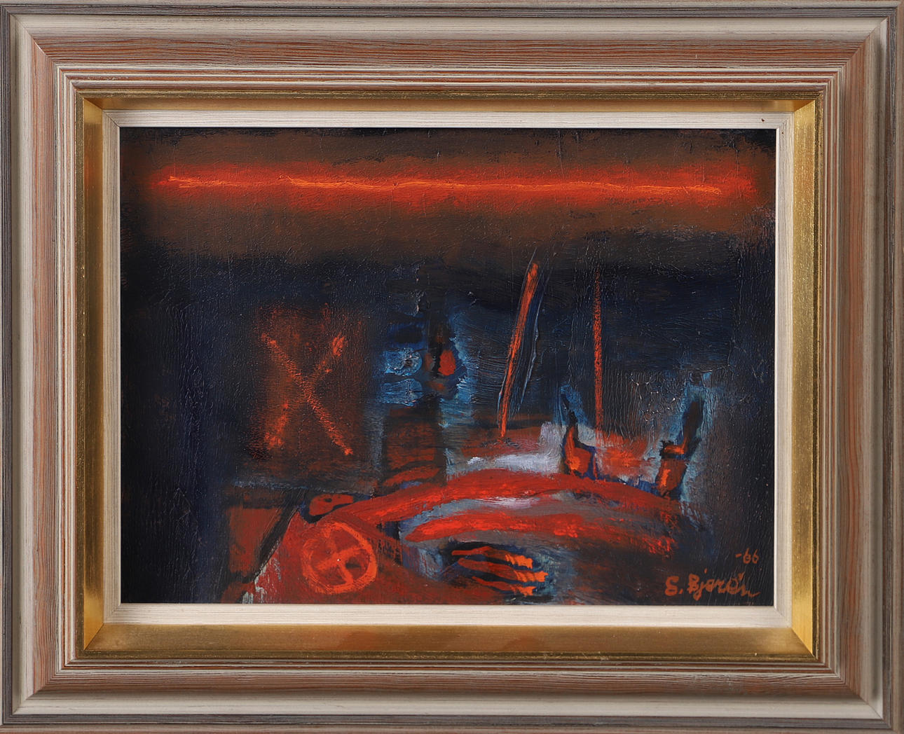3395978. EKE BJERÉN. Composition, oil on panel, signed E. Bjerén -66.