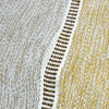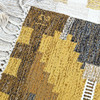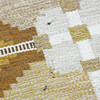 Checkered pattern with large medallions and stylized flowers of different colors, mustard yellow, beige, green and gray.