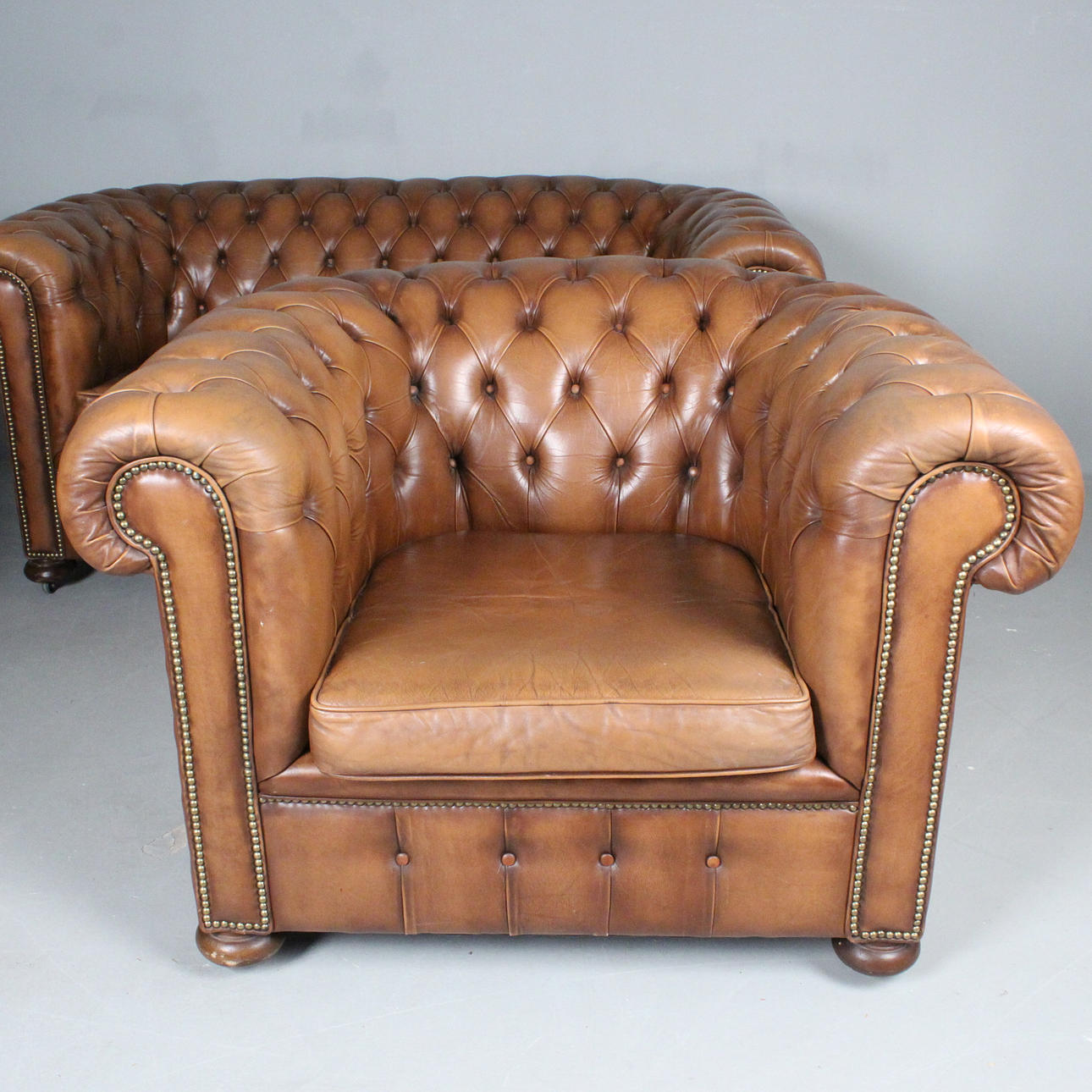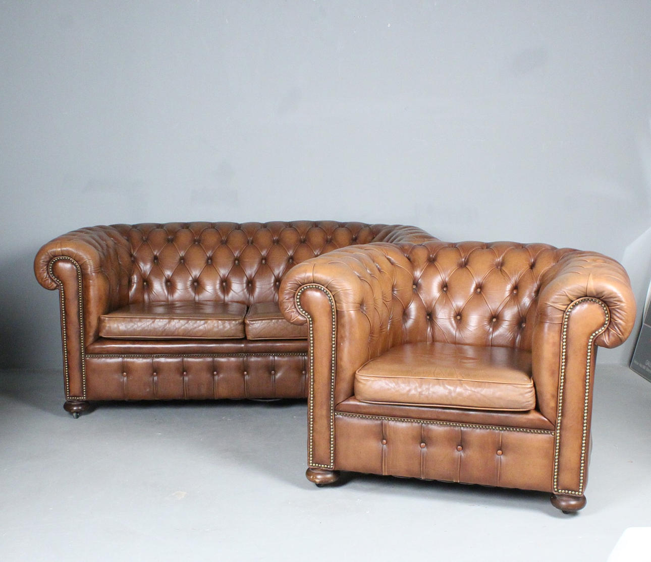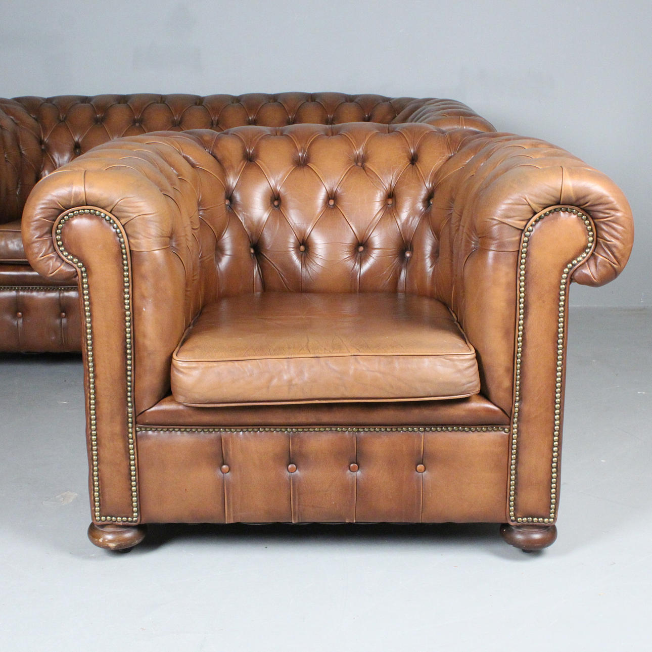 3398078. Chesterfield leather sofa set, 1970s.