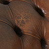 Chesterfield seating group, leather, 1970s, consisting of a three-seater, a two-seater and an armchair, upholstered construction covered with brown/cognac-colored leather, loose seat cushions,