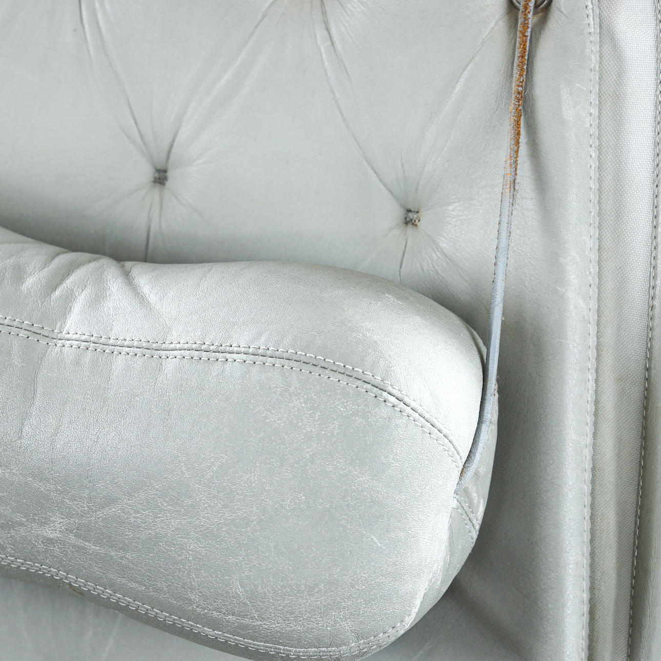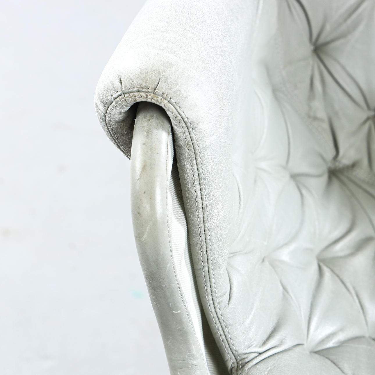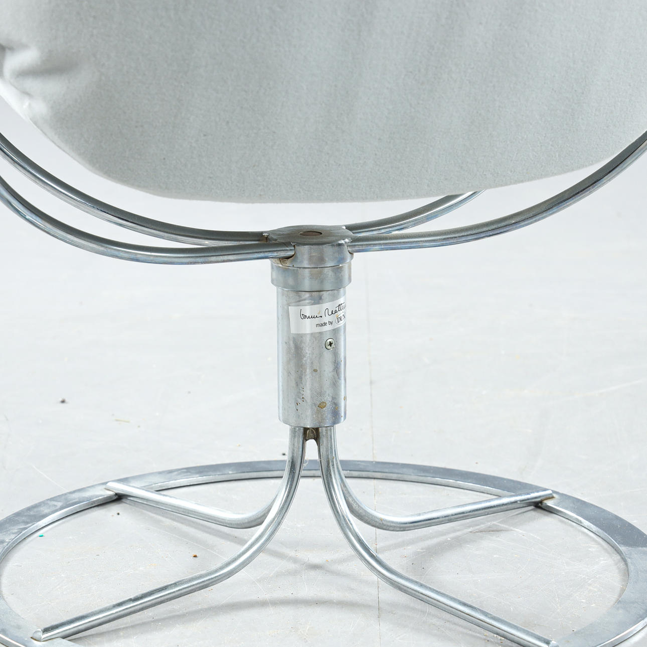 Leather upholstery, chromed leg stand with swivel function, label marked, seat height approx. 43 cm.