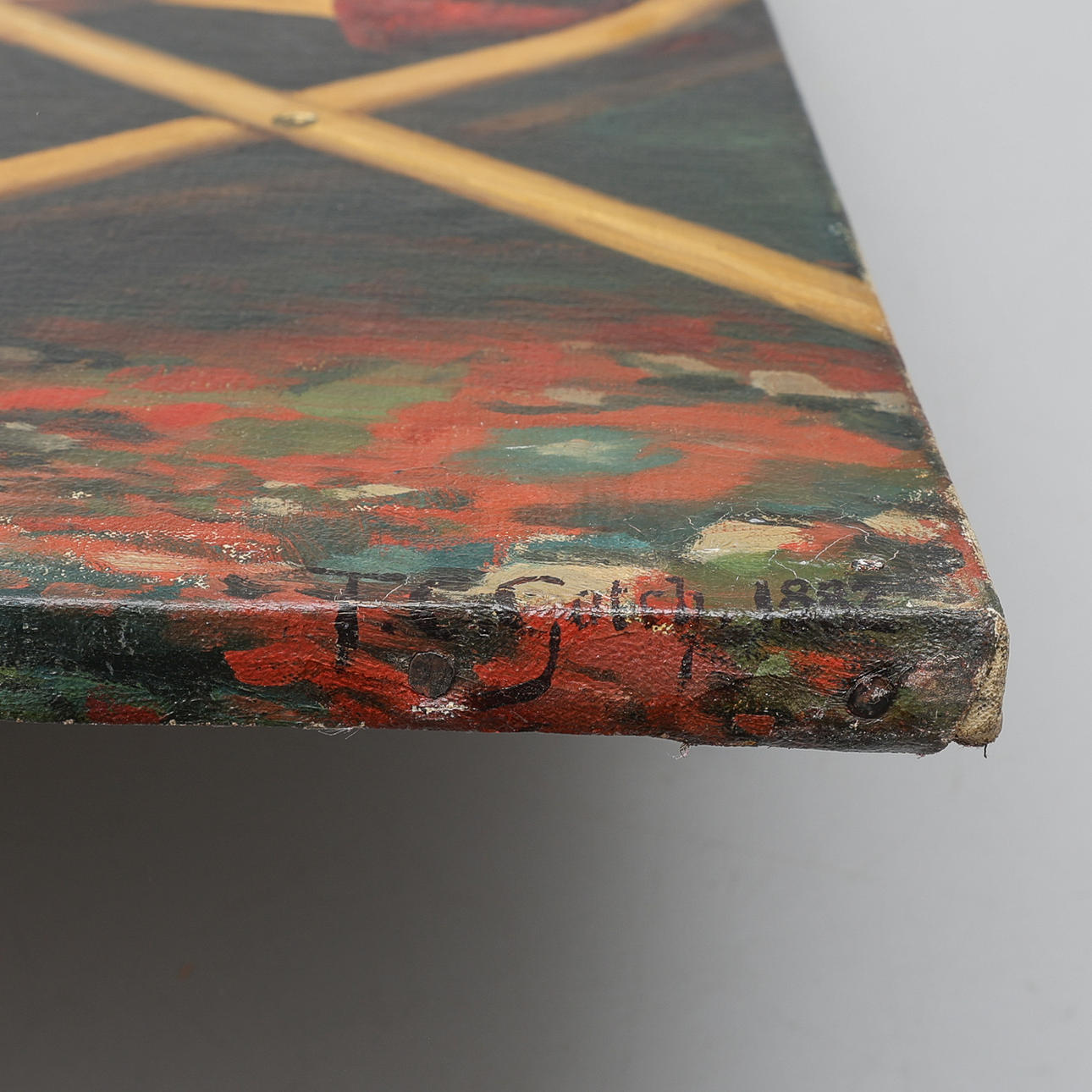 Duplicated canvas, below refolded, signature and dating thus partially hidden.