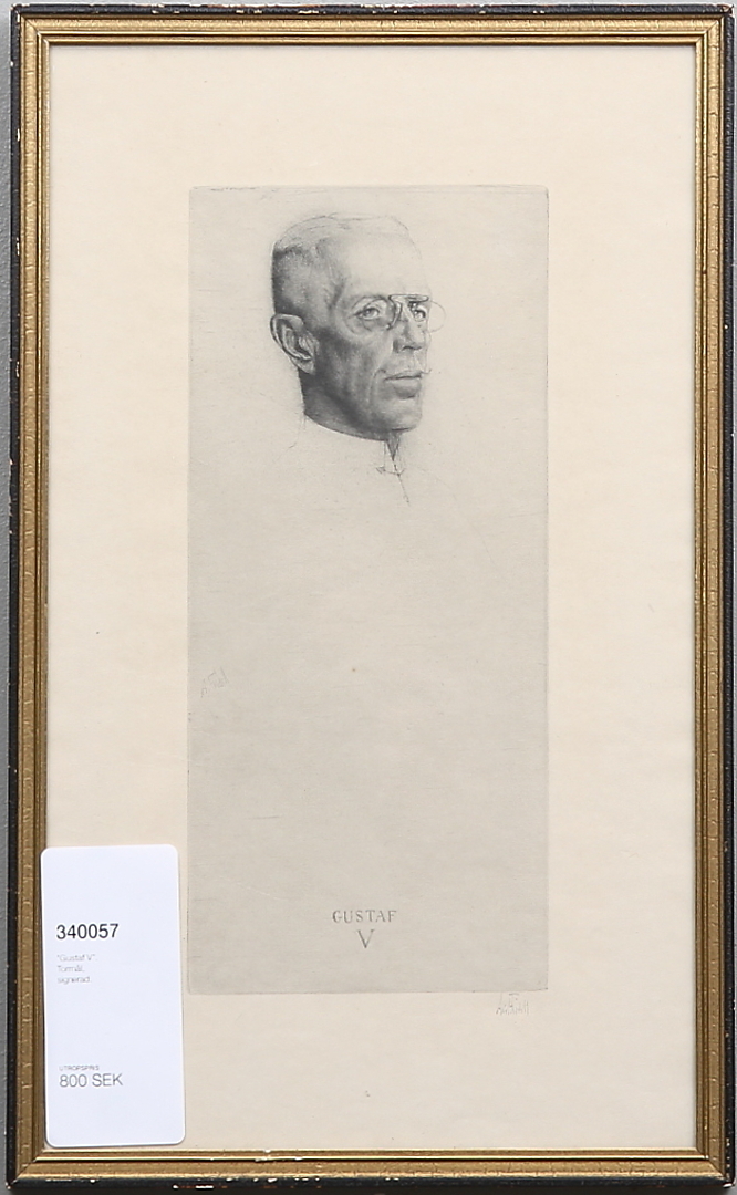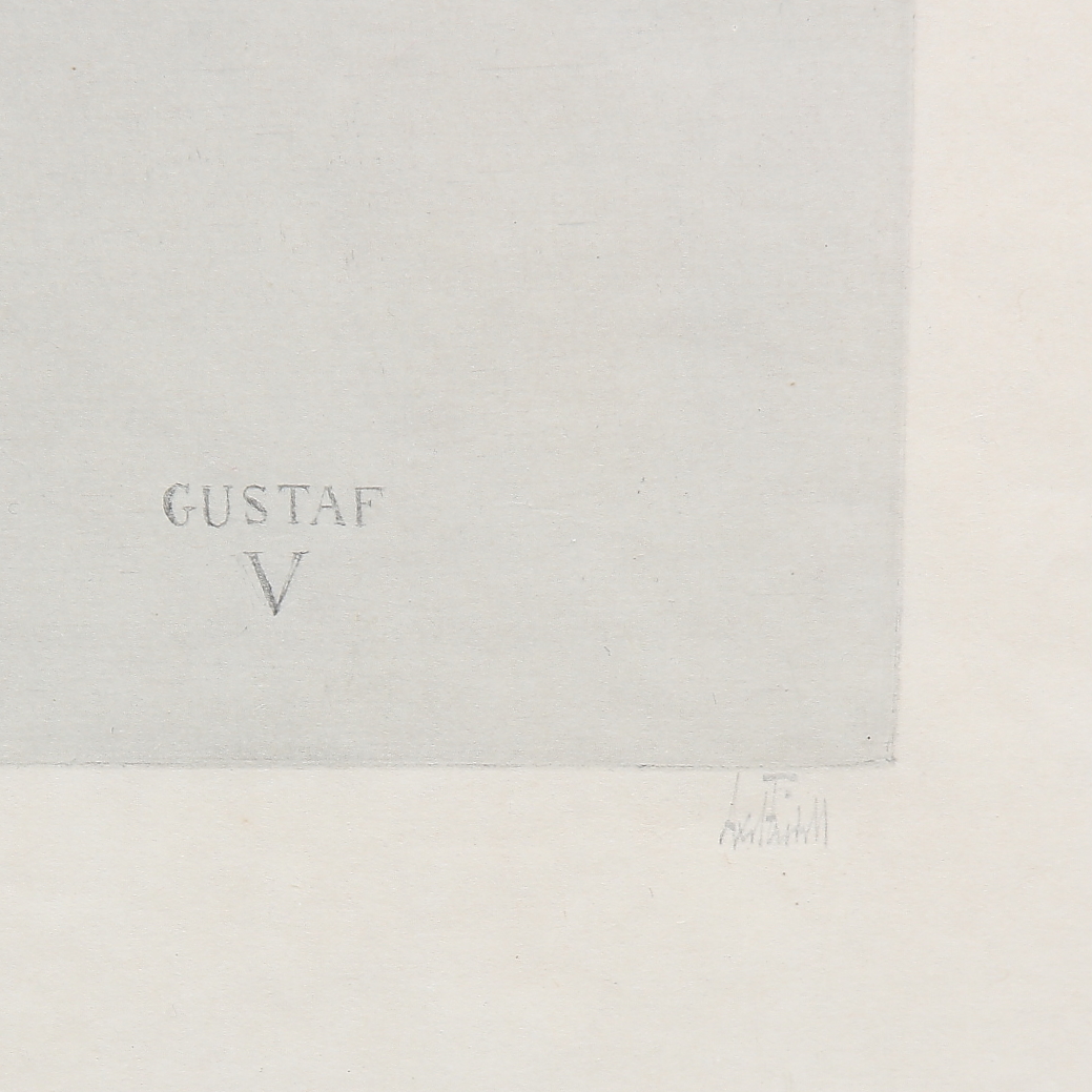 340057. AXEL FRIDELL. "Gustaf V". Dry needle, signed.