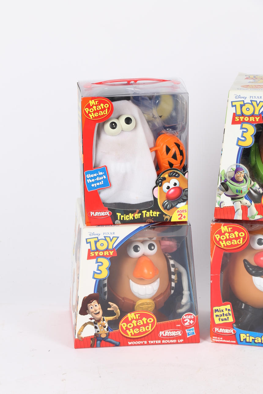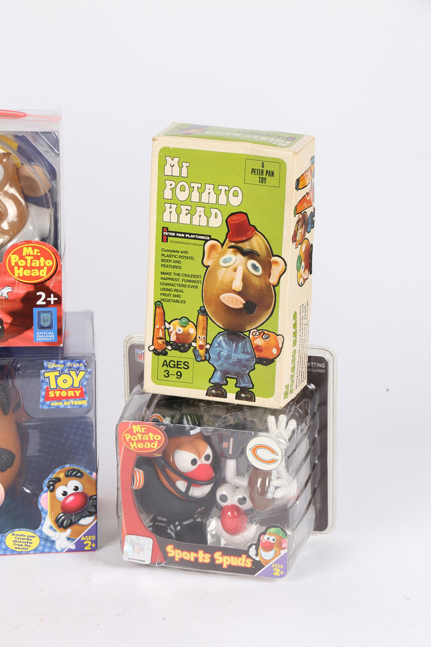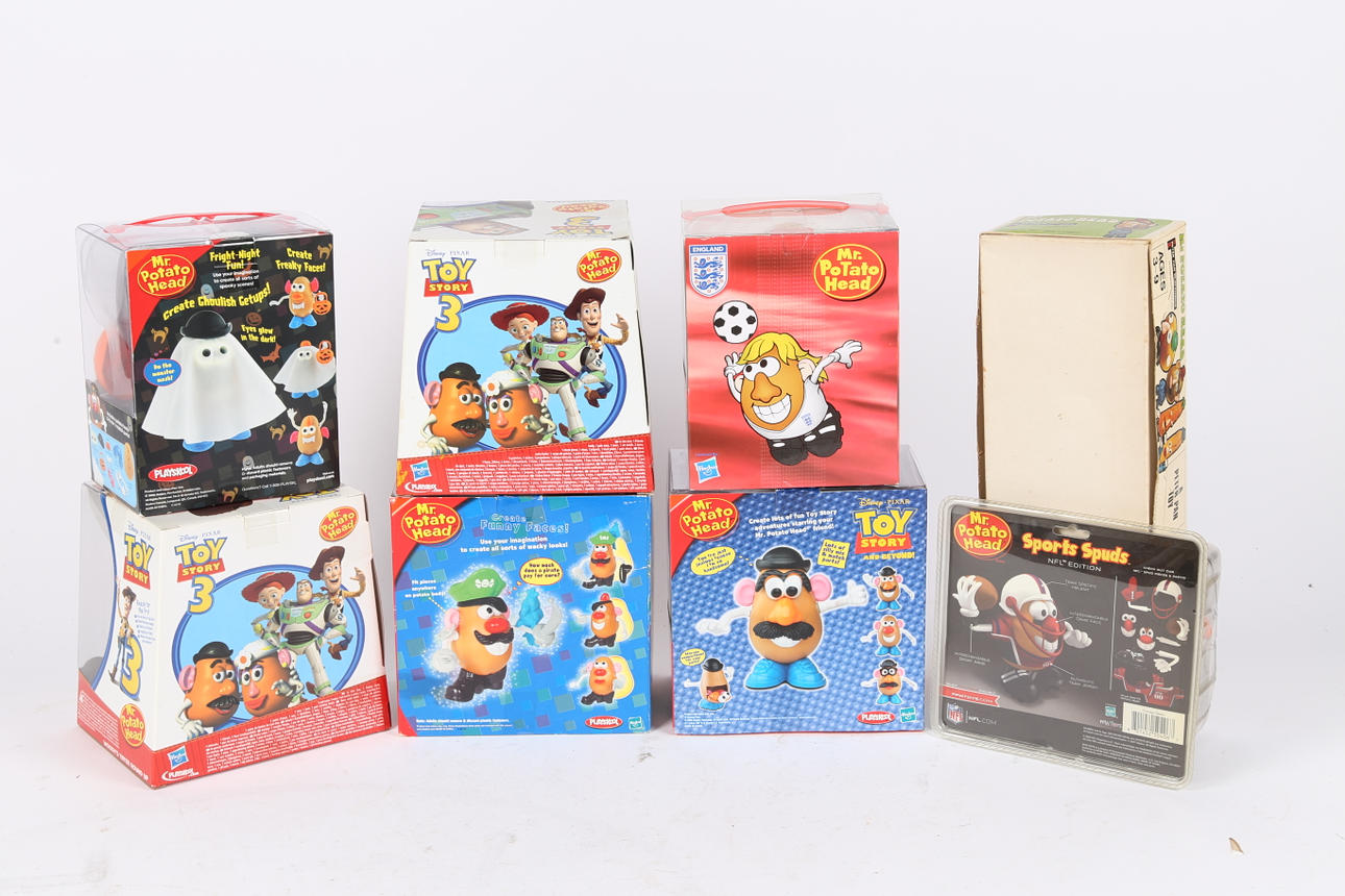A collection of Hasbro Mr Potato Head boxed figures and a Peter Pan Playthings Mr Potato Head, to include a Sports Spud Chicago Bears Edition (LF 027315969), England Football Player (B8591879), Mr Potato Head Toy Story And Beyond (02350), Pirate Spud (02506.284), Trick Or Tater (02547), Spud Lightyear (24361), and Woody's Tater Round Up (24363). (8).