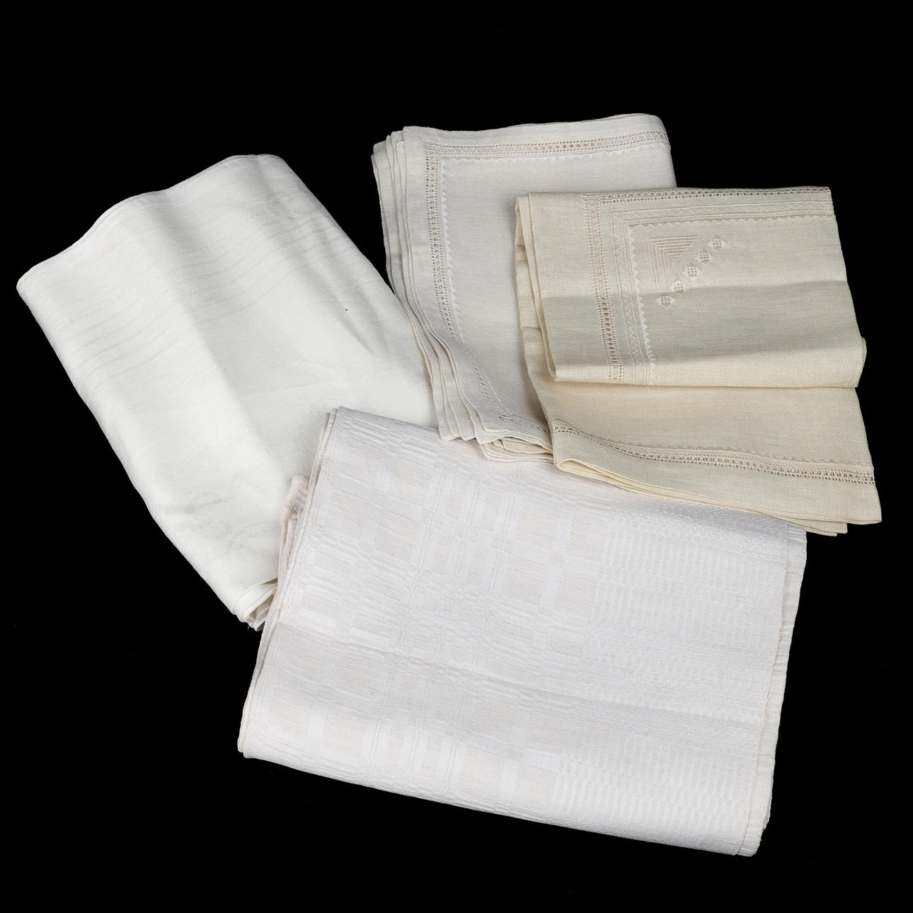 Canvas 98 x 98 cm with lace and embroidery and associated 6 napkins/placemats.