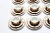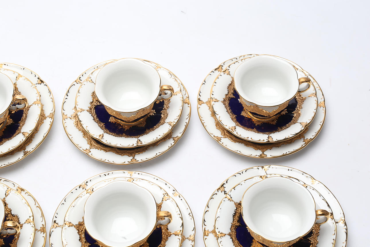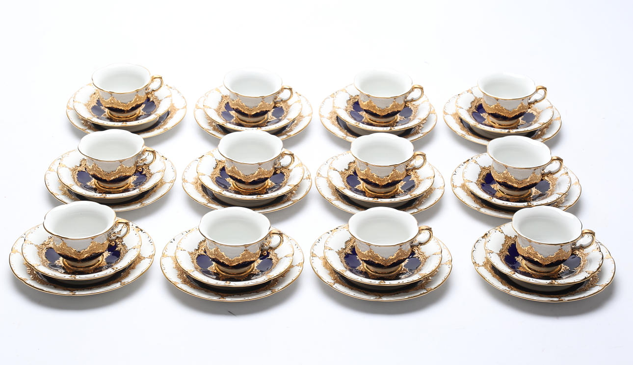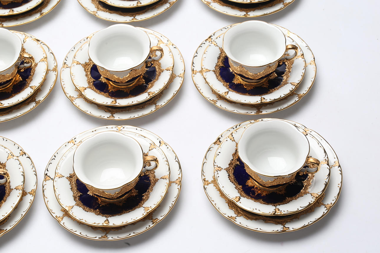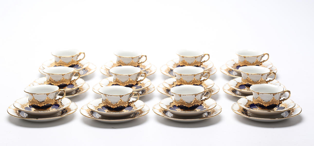 12 cups, height approx. 5 cm. 12 barrels, diameter approx. 13 cm. Side dishes, 12 pcs, diameter approx. 15.5 cm.