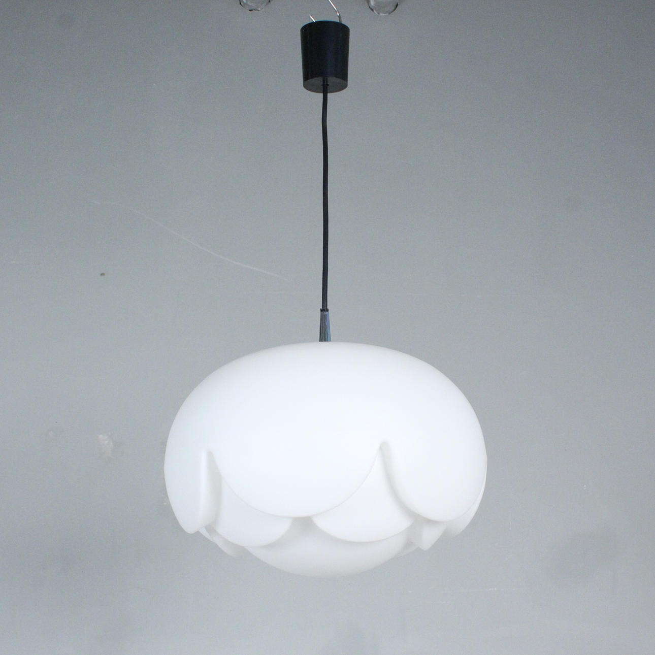 Peill & Putzler, ceiling light/White opal glass hanging lamp, 1970s,