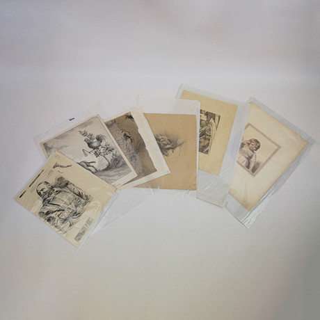 An interesting set of 18 small Victorian etchings telling the story of Tom Kitely, each mounted in oak frames and with notes about each picture on cards. Etchings 12cms by 7.5cms, frames 17cms by 12cms.