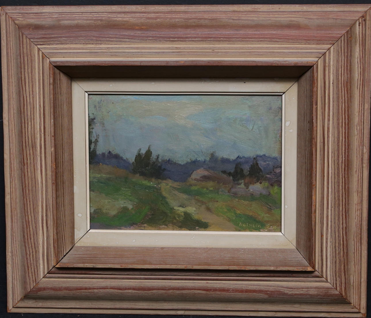 BRITA ROTHLIN-ZACHRISSON. Landscape. Oil on panel, signed.