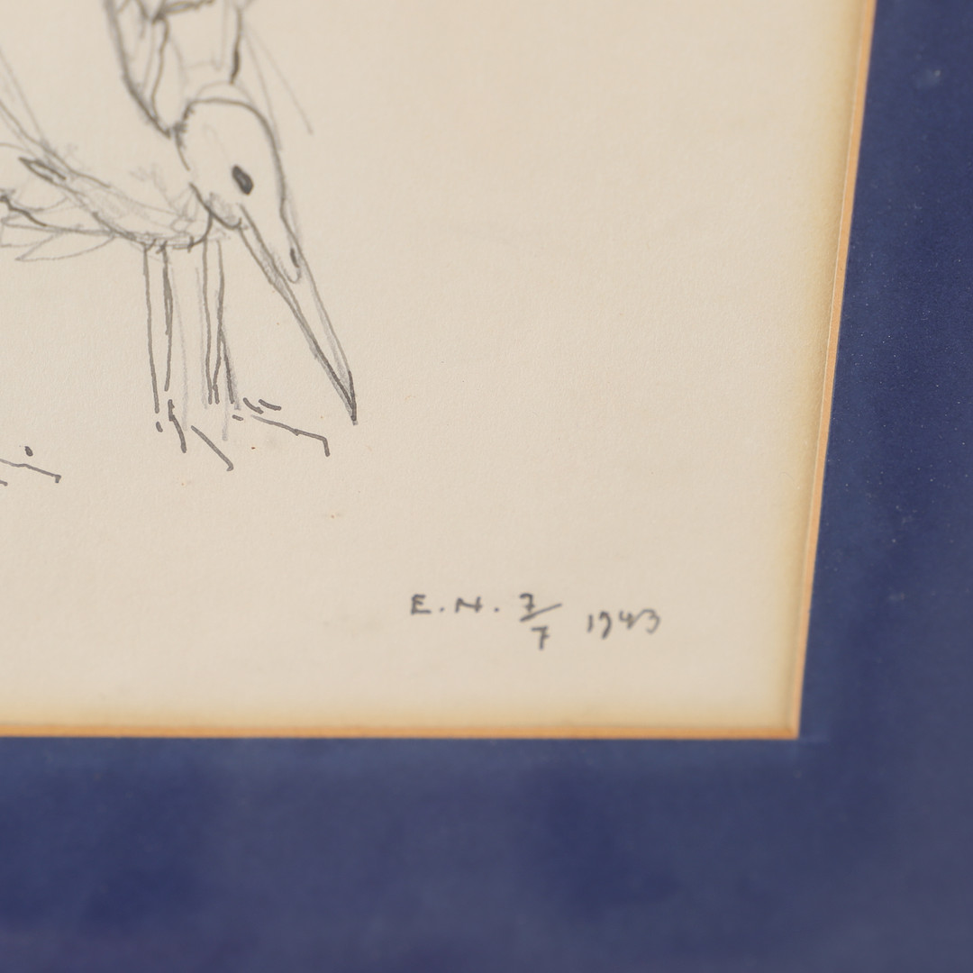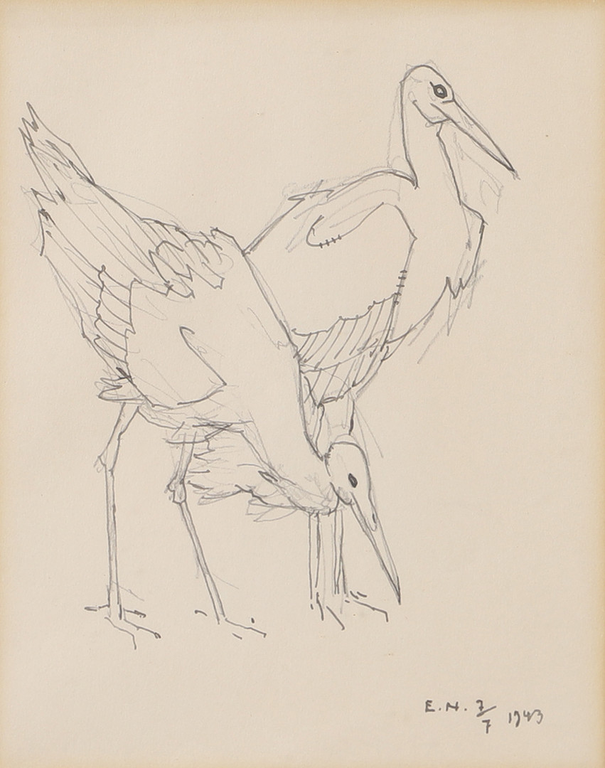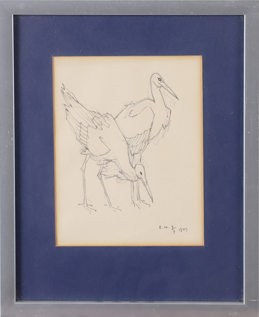 3411037. ERNST NORLIND. Storks, drawing, signed E.N. 1943.