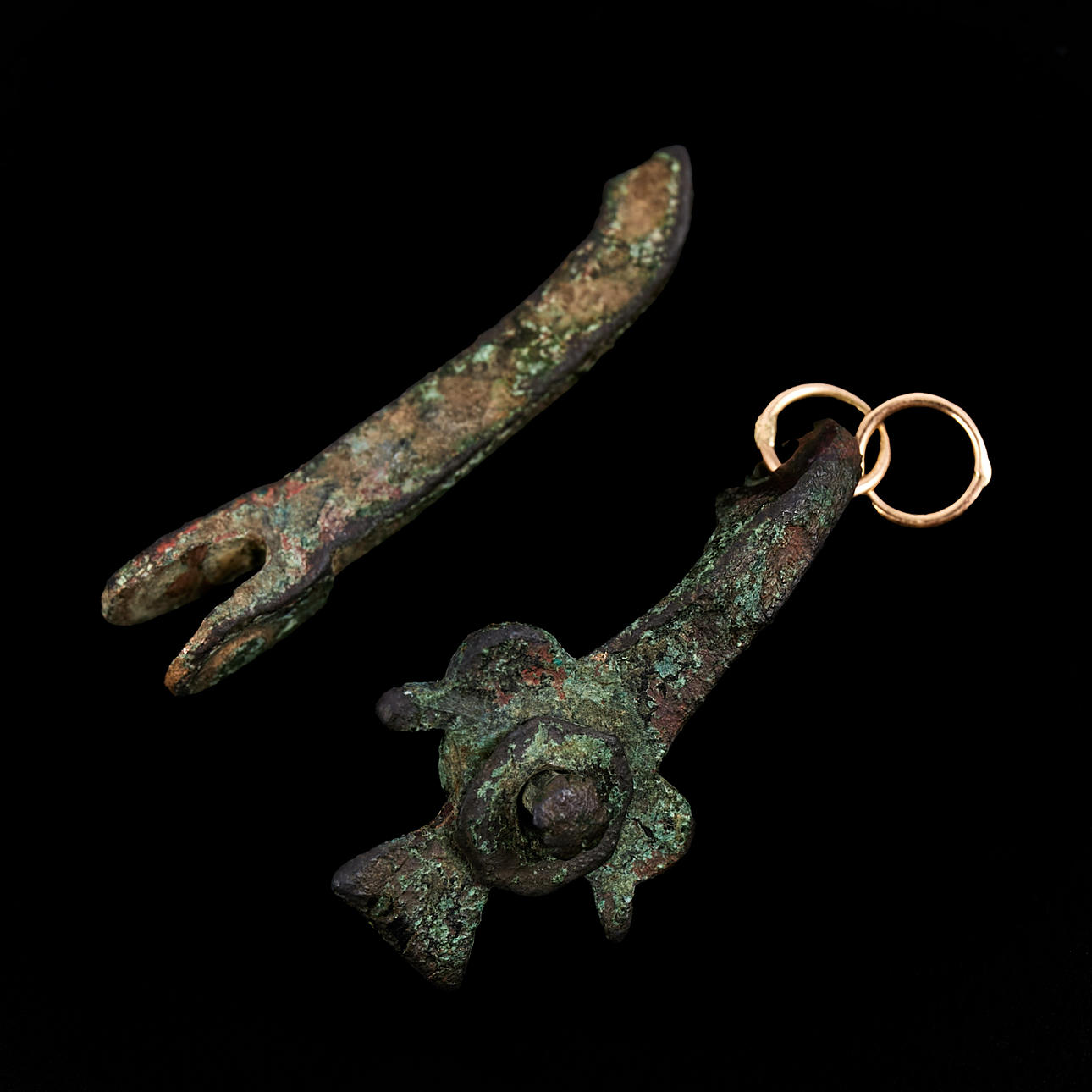 Two bronze harnesk ornaments, 14th century.