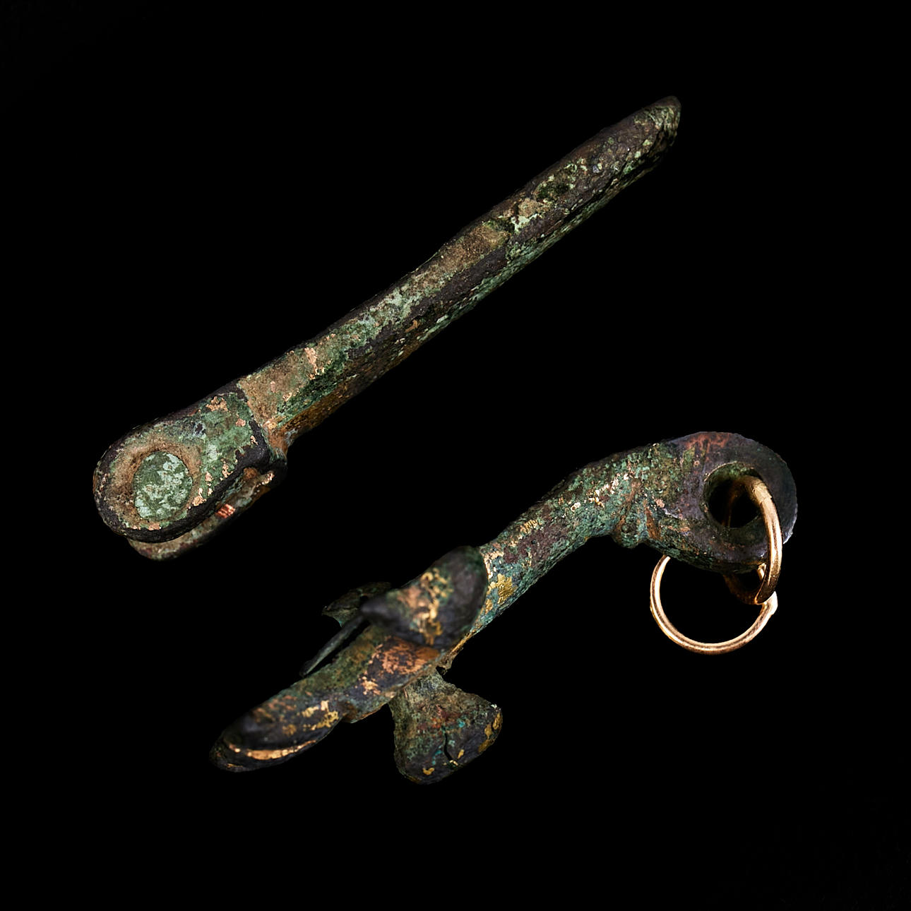 3417391. Two bronze harnesk ornaments, 14th century.