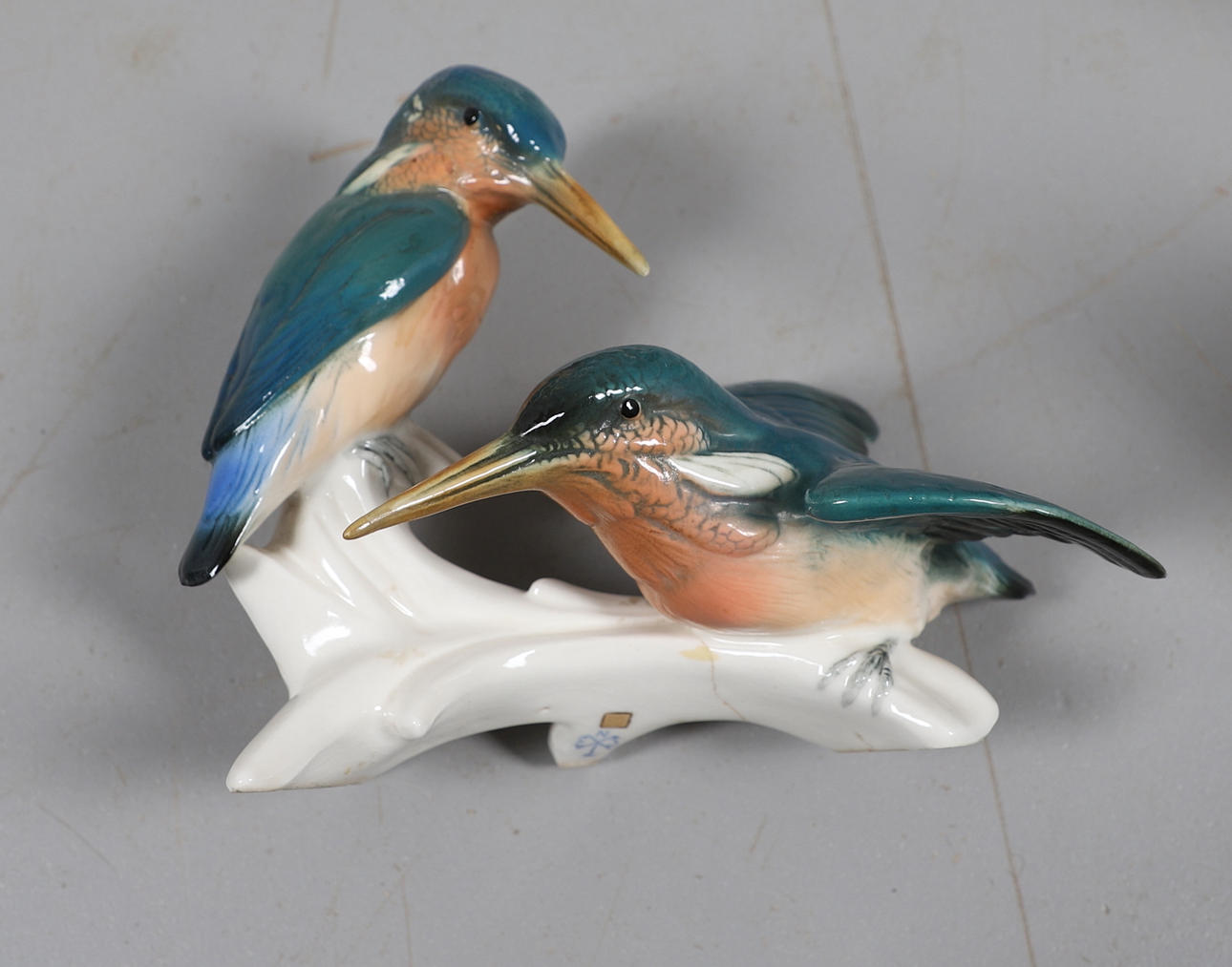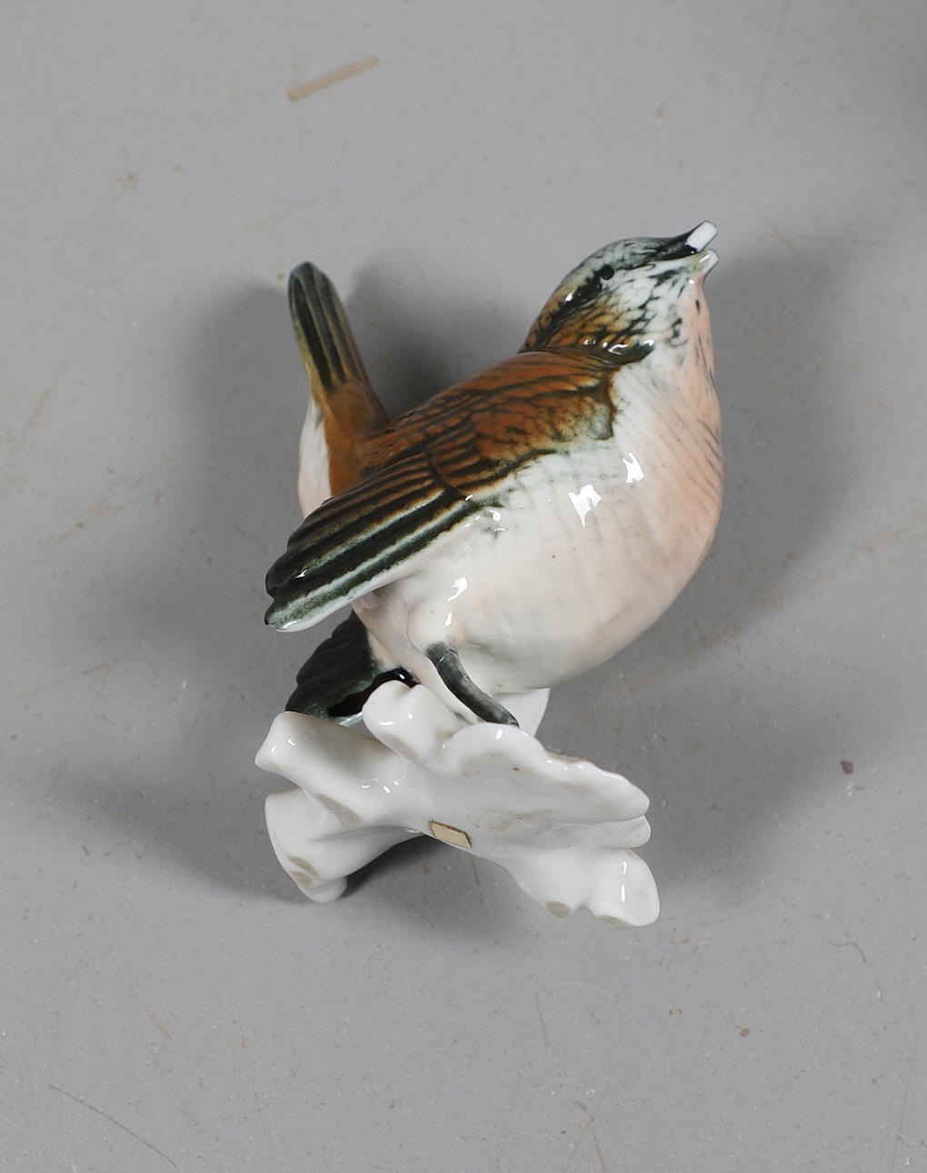 All figures broken and re-glued. Chips to beak of small single bird. Robin good.