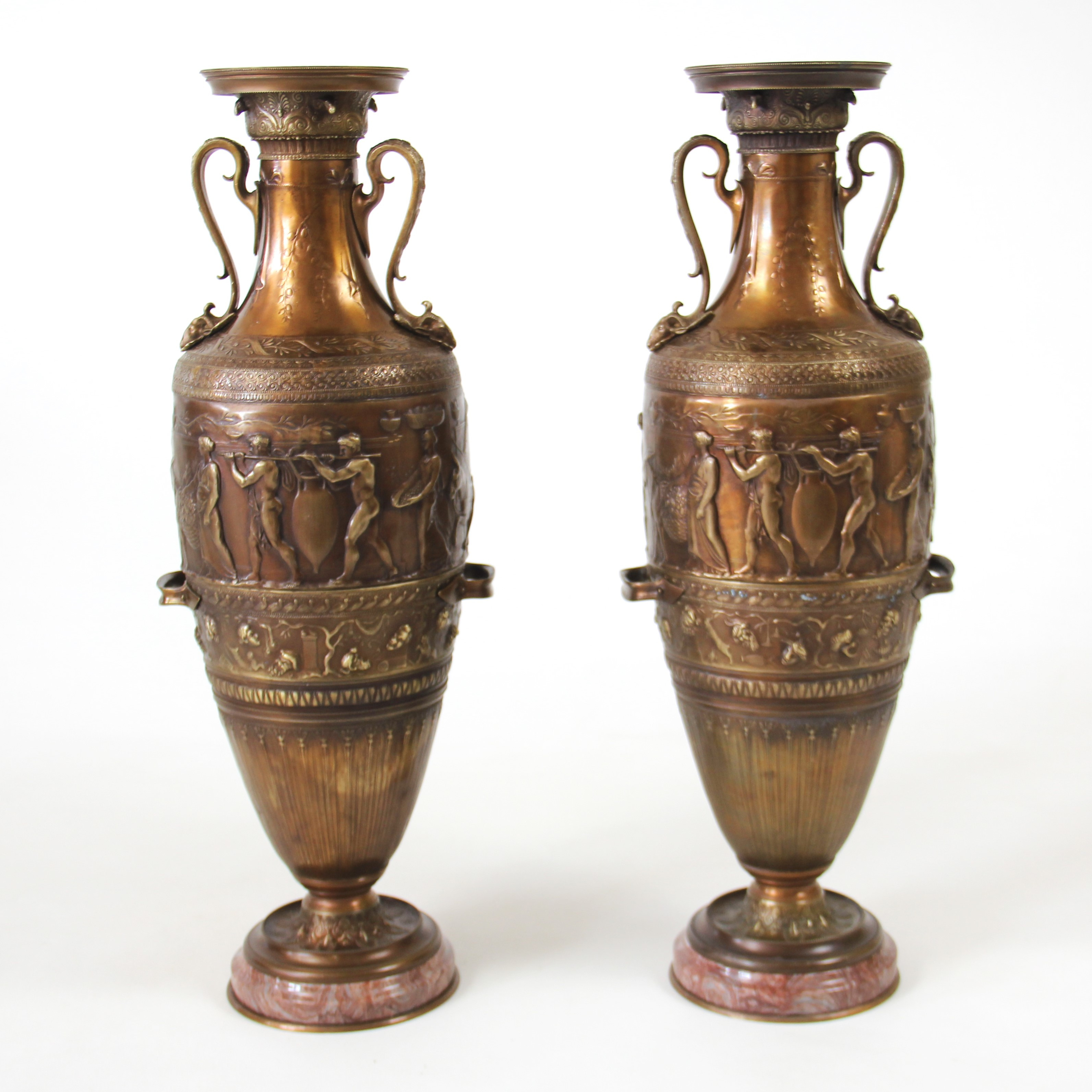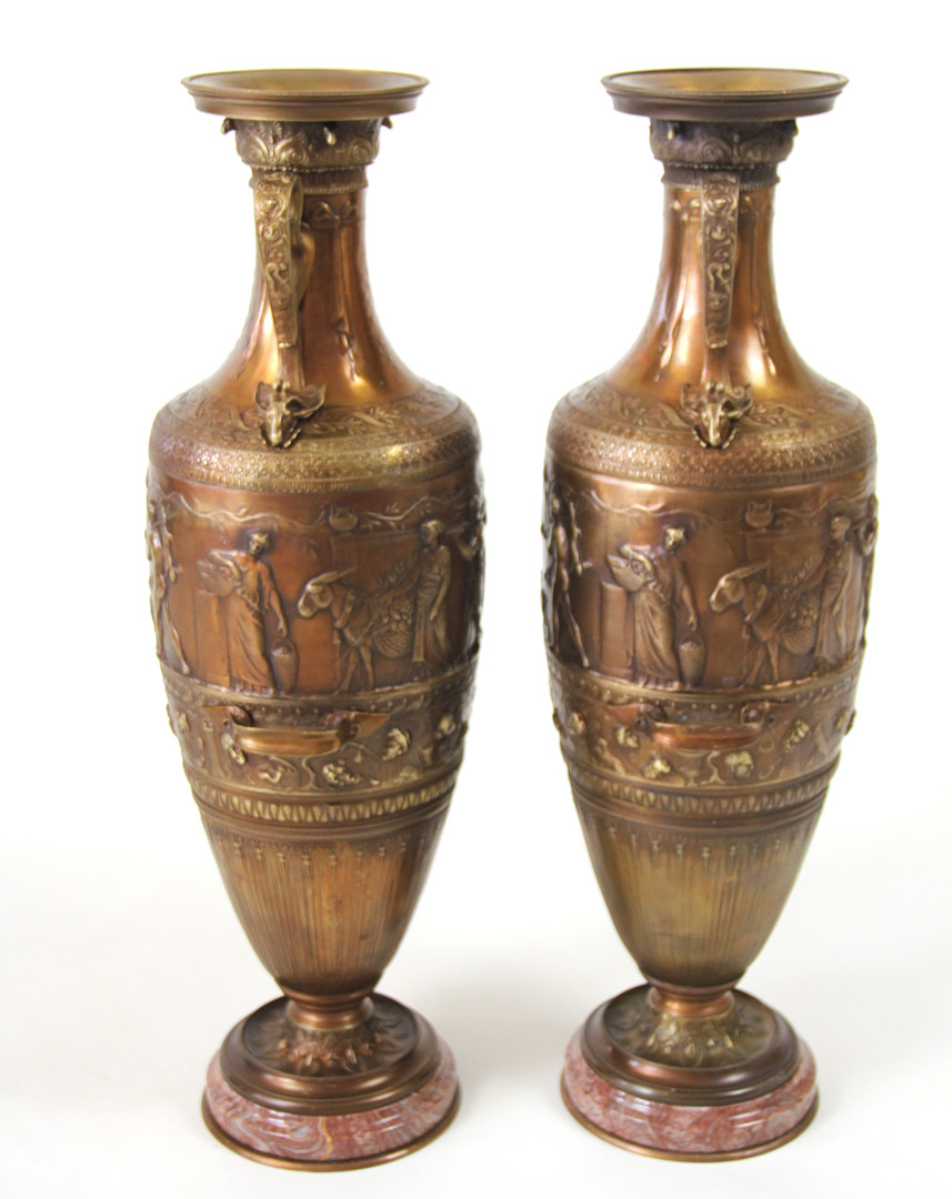 3421858. CLASSICAL STYLE BRONZE URNS.