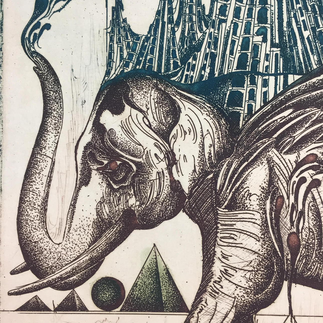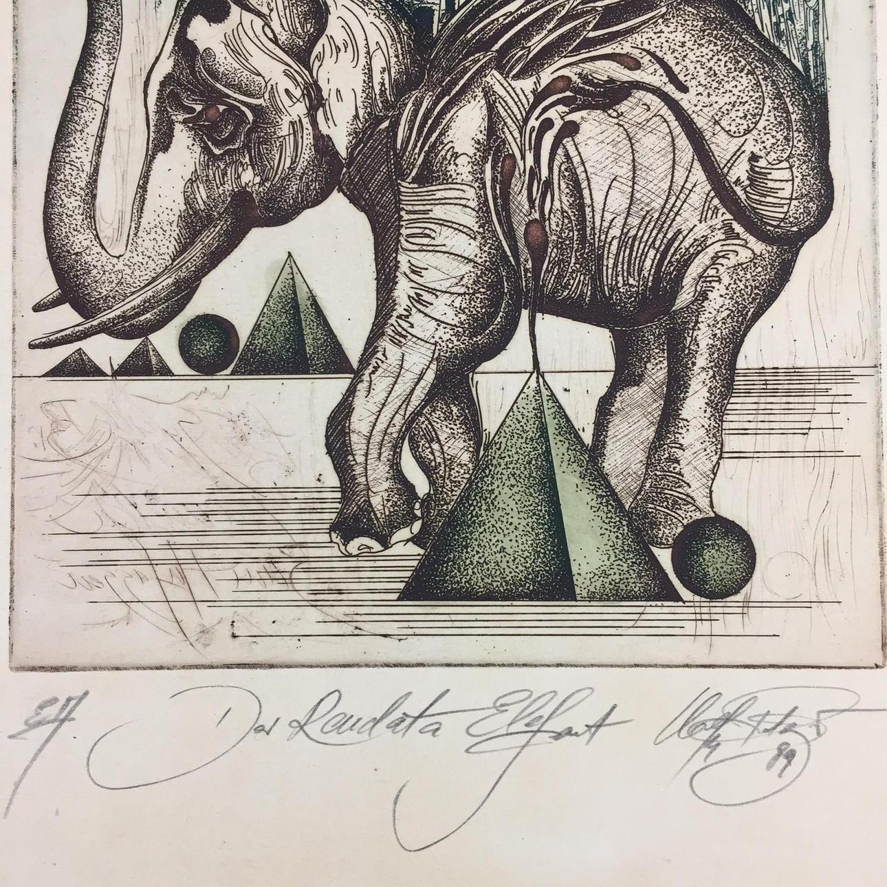 Fratzscher, Wolfgang - “Der Rendata Elefant”, etching 1989, signed and dated at the bottom right, titled in the middle, inscribed on the right “E.A.“, picture size approx. 29.8x20.8 cm, sheet size approx. 42x30cm.