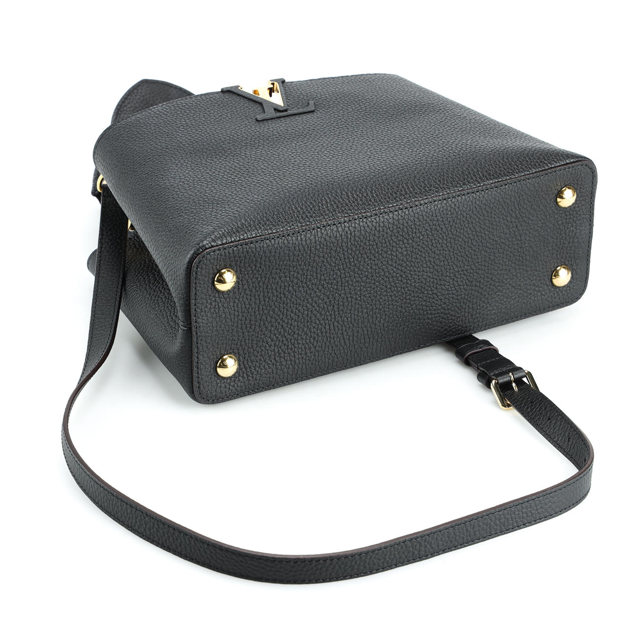 in black “Taurillon” - leather. Fuchsia pink interior with two compartments and a zippered compartment. Hardware in yellow plated metal. Removable shoulder strap. Tagged LOUIS VUITTON PARIS made in france Purchased in the Louis Vuitton store, Copenhagen autumn 2022. Dustbag, (not from the time of purchase) included.