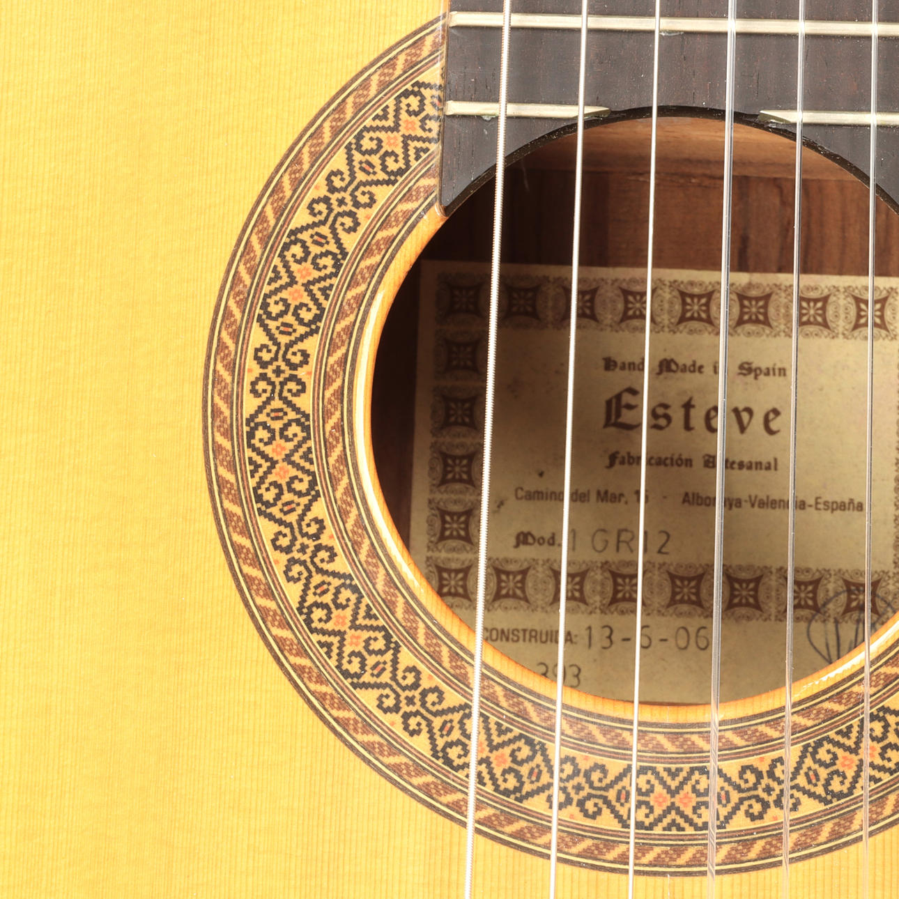 Tagged with Esteve, Valencia, Mod 1 GR12, Construida: 13-6-06, No 393. Signed by Manuel Adalid (son of Esteve Guitars founder)