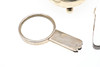 with its handle missing, by G.W Lewis & Co, Birmingham 1932, together with a pair of sugar tongs and a silver plated sugar basket; the magnifier 5.3" (13.5cm) long (3).