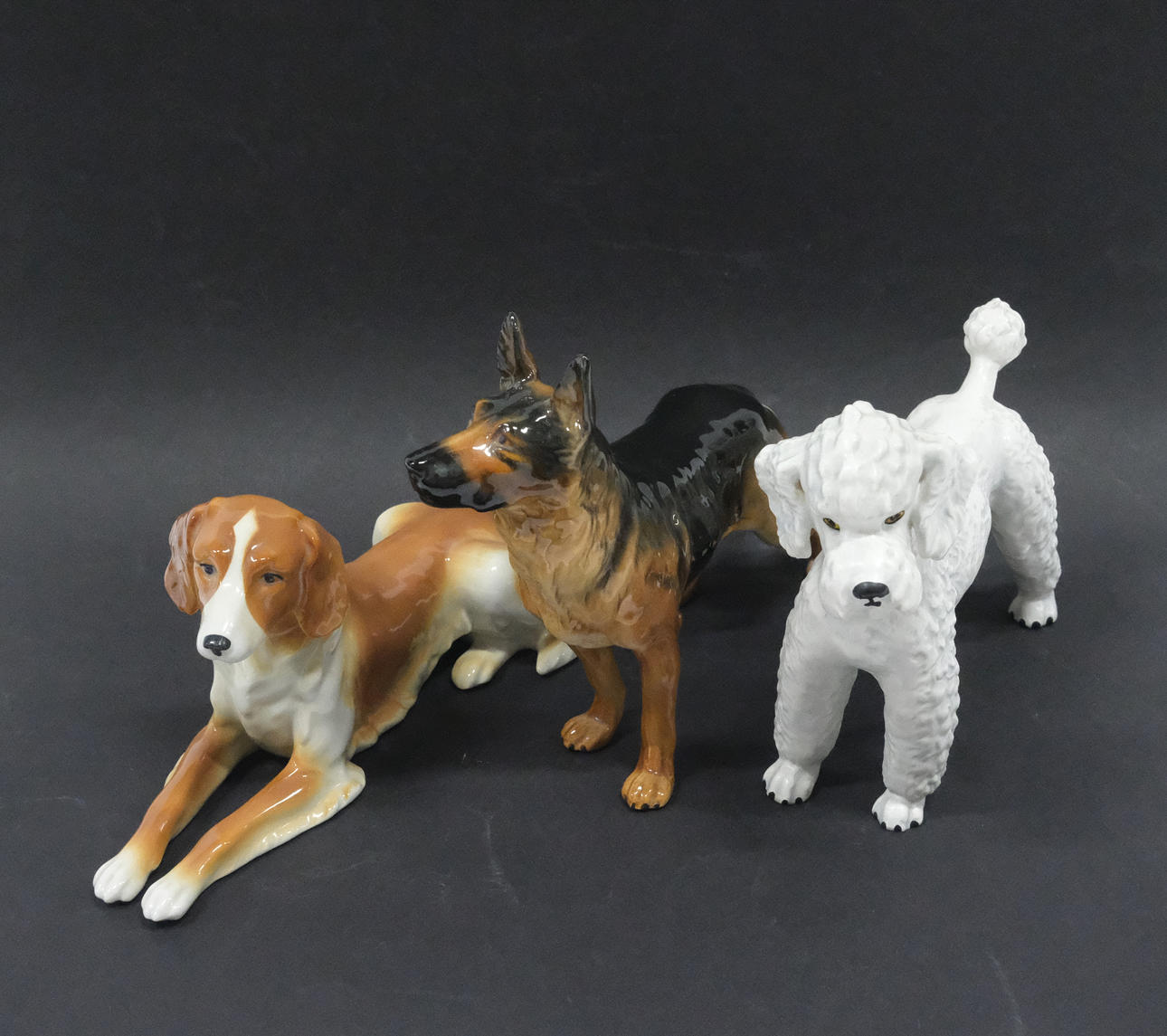 3431604. THREE DOG FIGURINES. GOEBEL AMONG OTHERS.