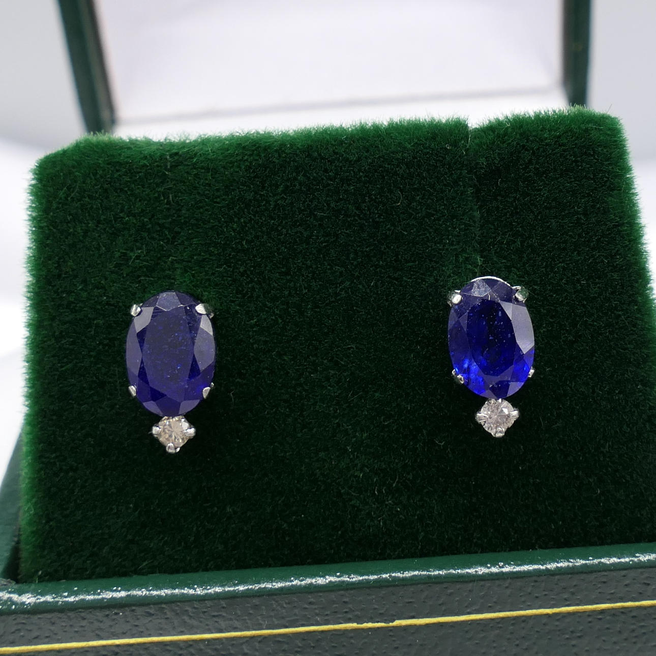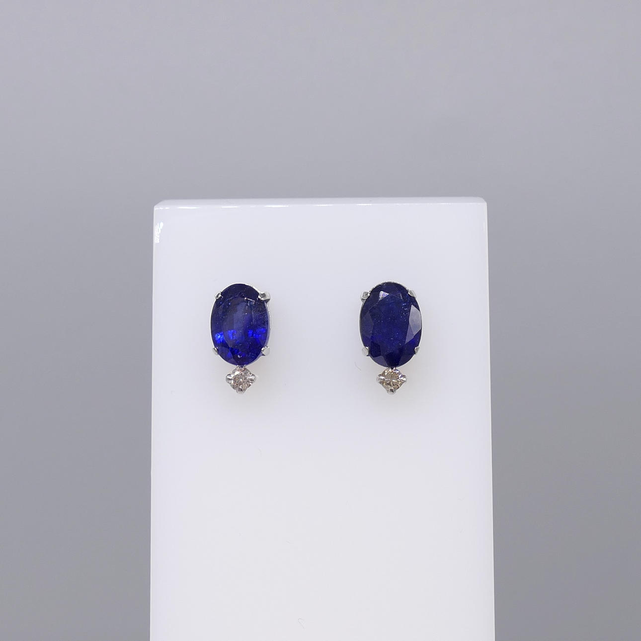A pair of 18k yellow gold oval-cut treated sapphire and diamond ear studs, boxed