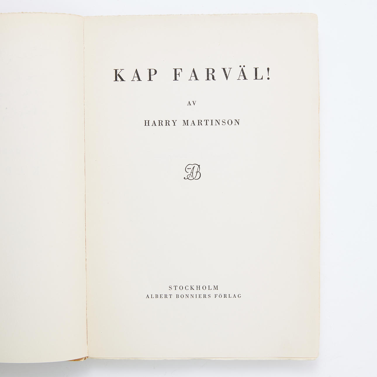 MARTINSON, HARRY. Cape Farewell. Stockholm, Bonnier, 1933.