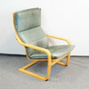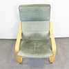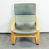 Armchair in grey/green leather and bent wood. Back height 93 cm. Seat height 42 cm. Width 68 cm.