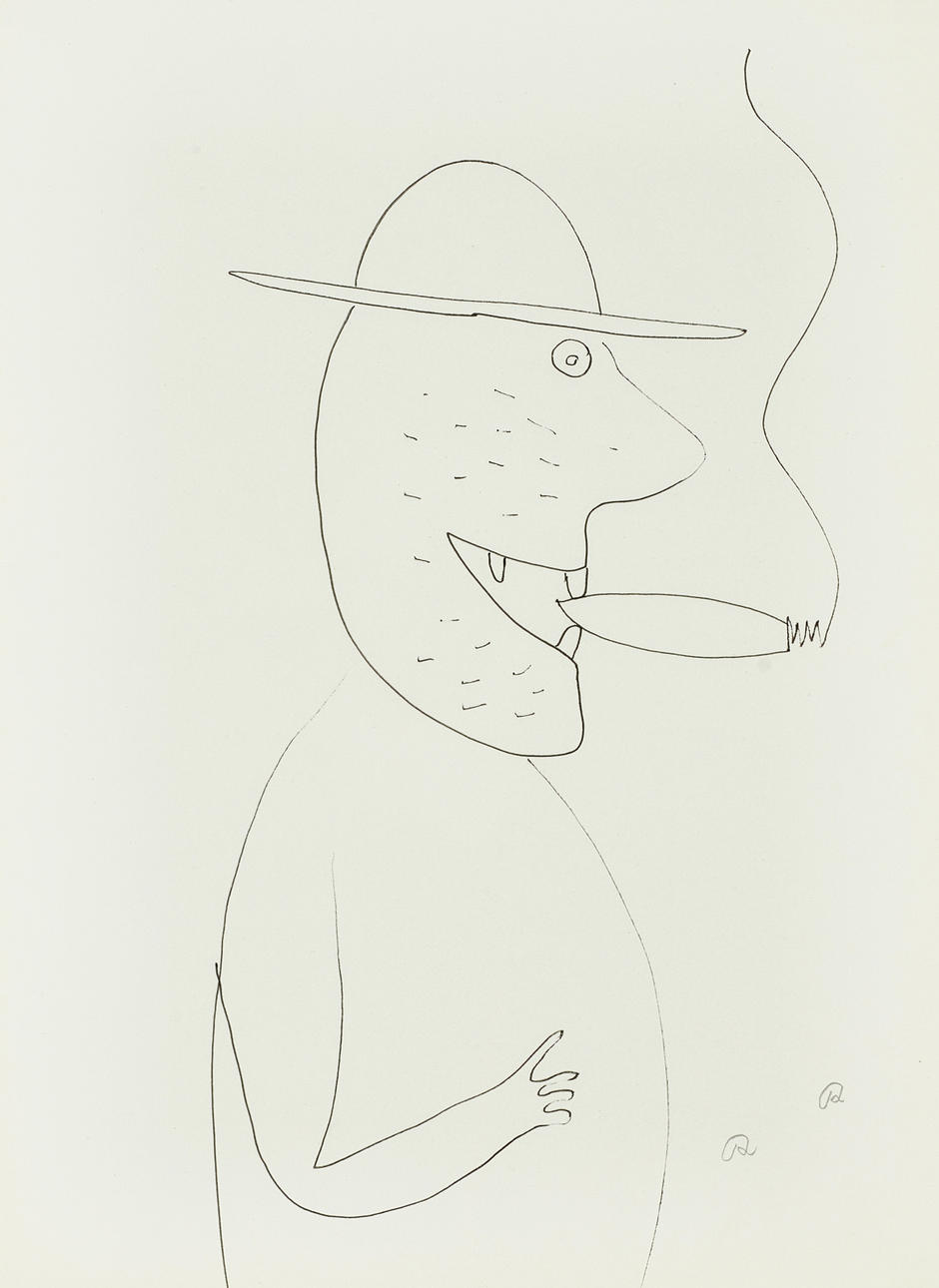 ROGER RISBERG (Sweden, Göteborg,1956-2011), Figure with hat in profile, monogram signed RR, ink drawing.