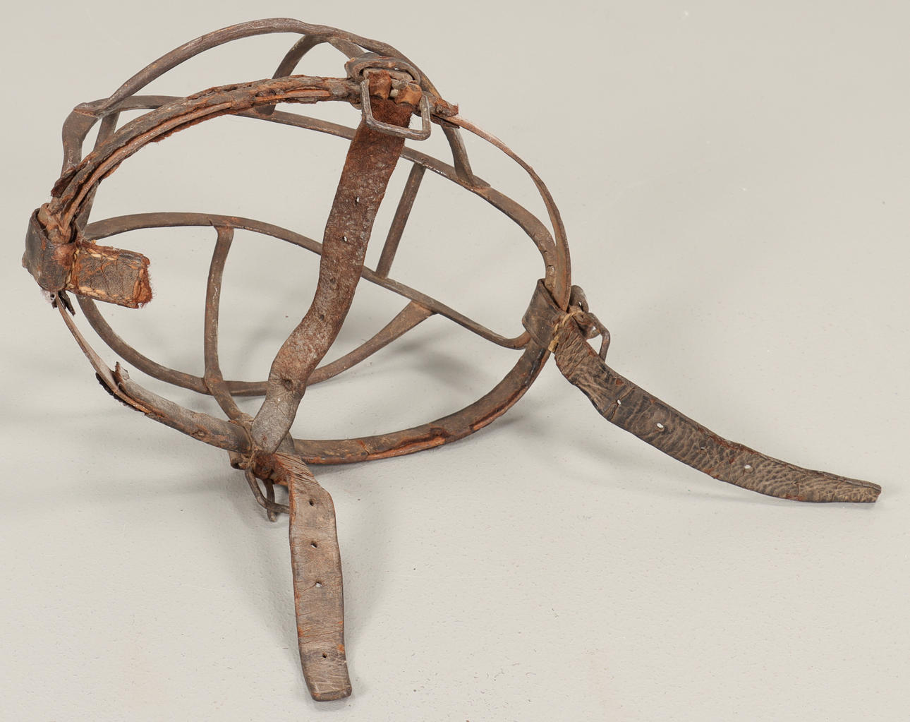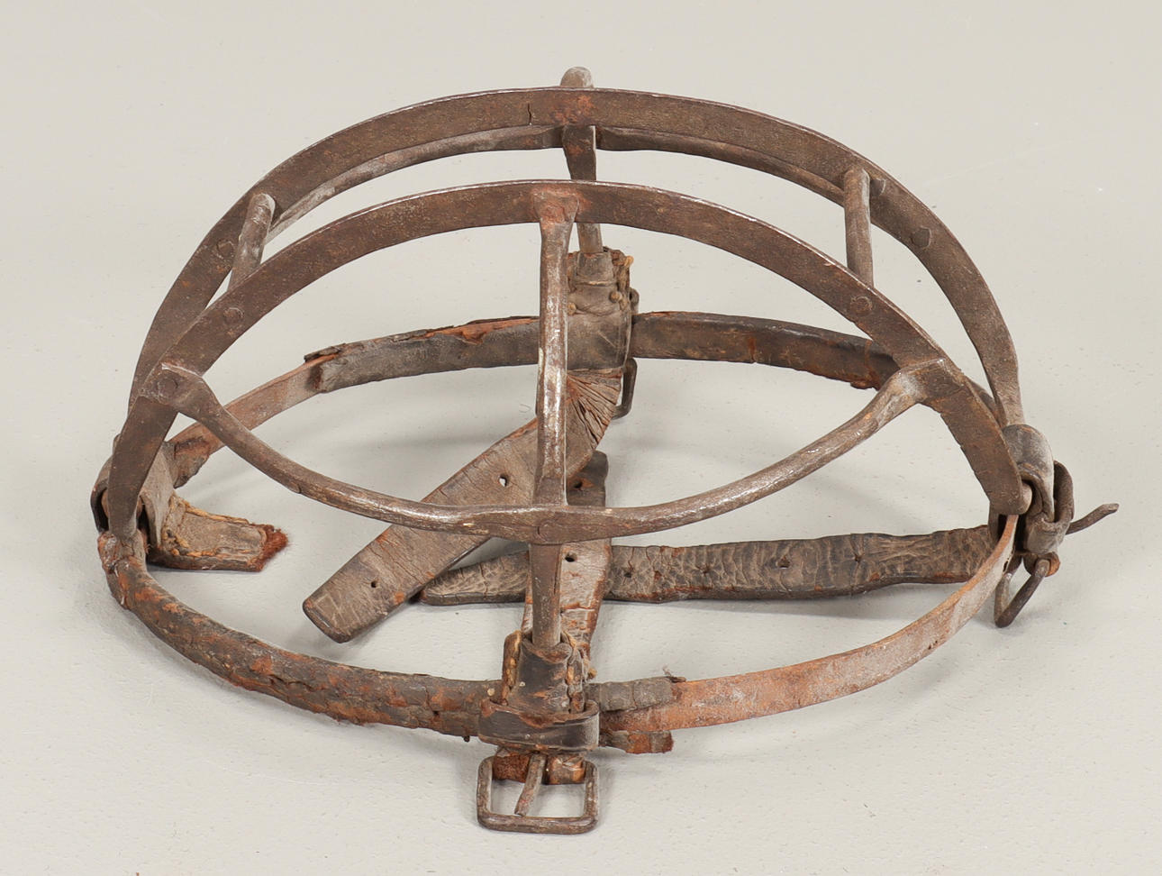 Iron with leather details and straps.