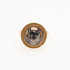 The reverse intaglio depicting a black and white cat mounted in gold, possibly formerly a stick pin terminal with later 9ct gold shank hallmarked Birmingham 1906.