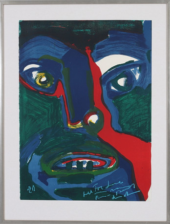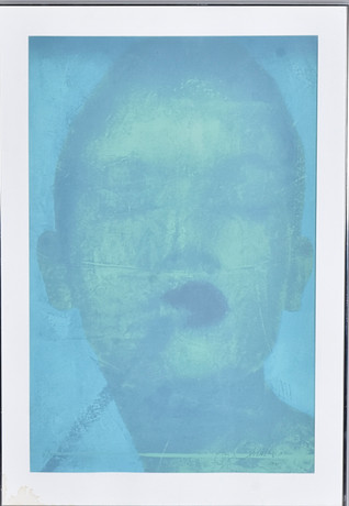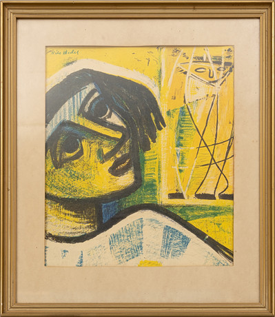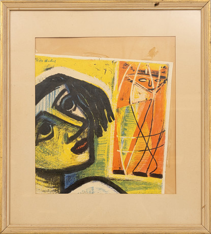 3441943. MICHAEL HASKETT. Face. Mixed media, signed and dated -88.