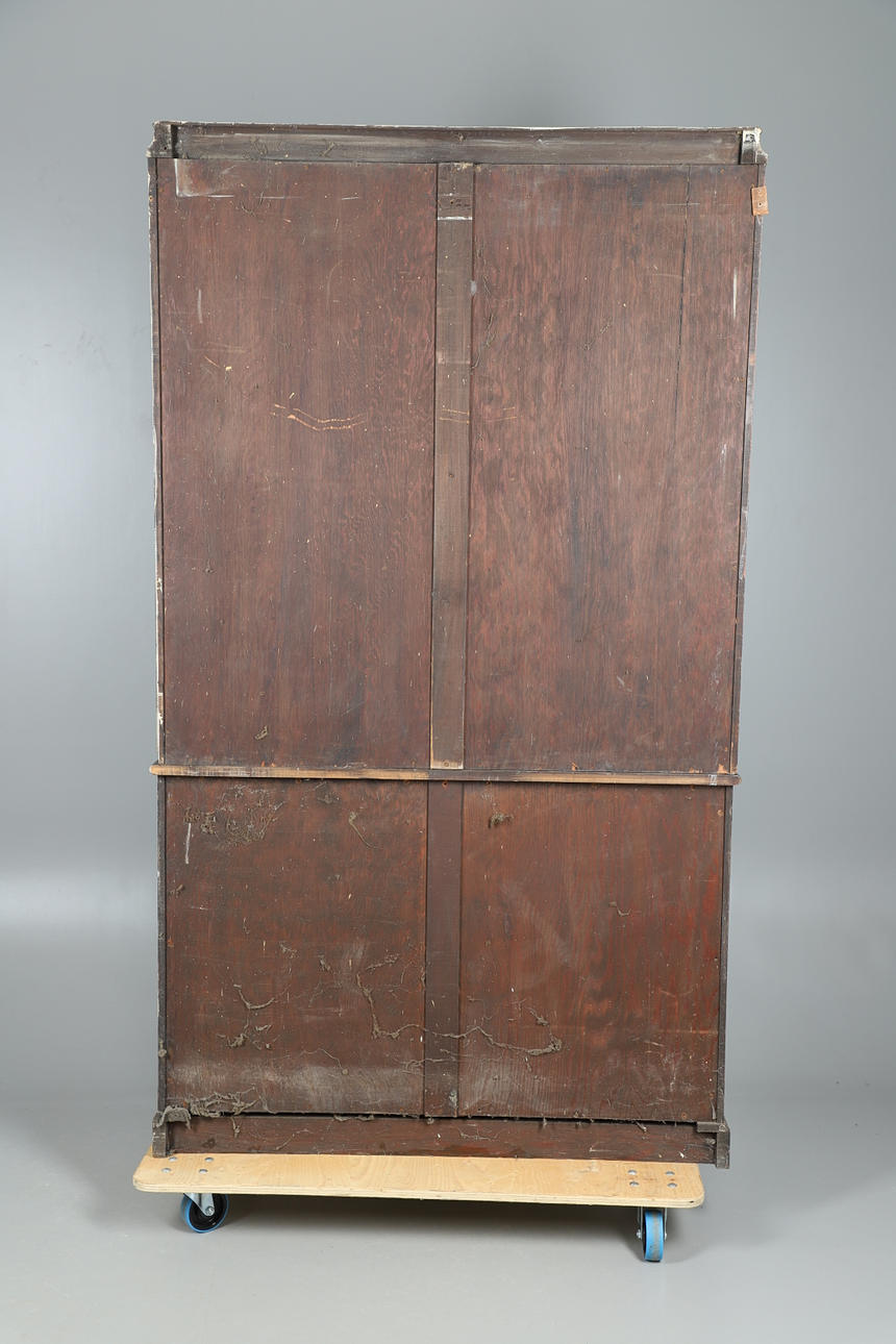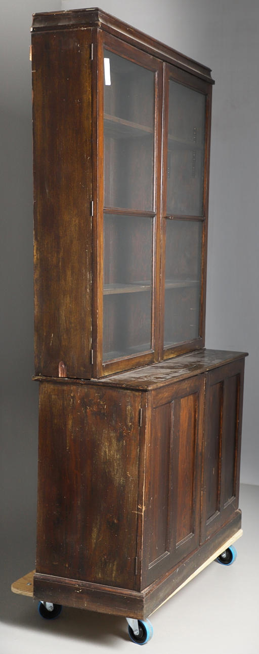 3442616. A STAINED PINE BOOKCASE WITH GLAZED UPPER SECTION.