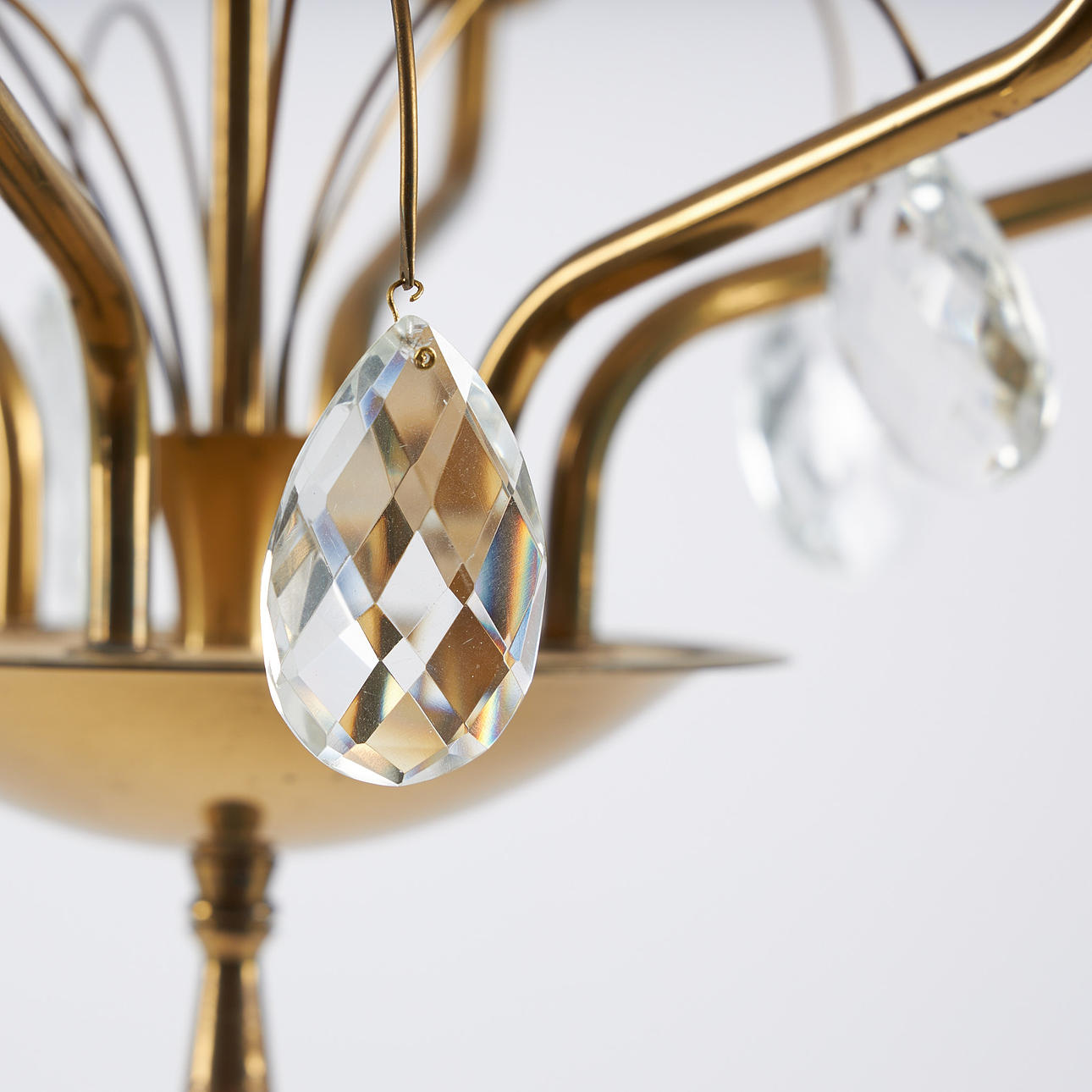 Six light spots, cups in opal glass with gold decor. Diameter 58 cm, height 67 cm.