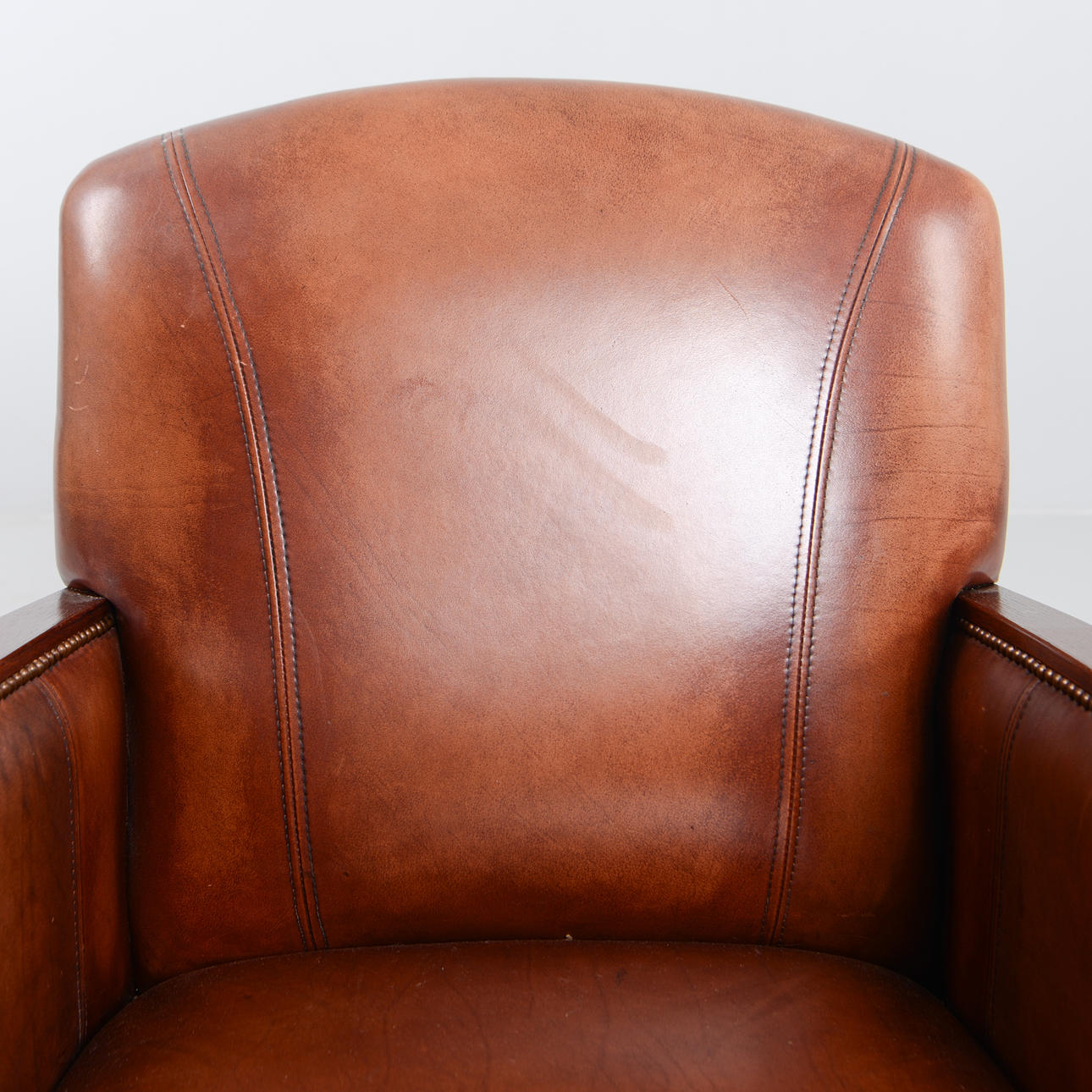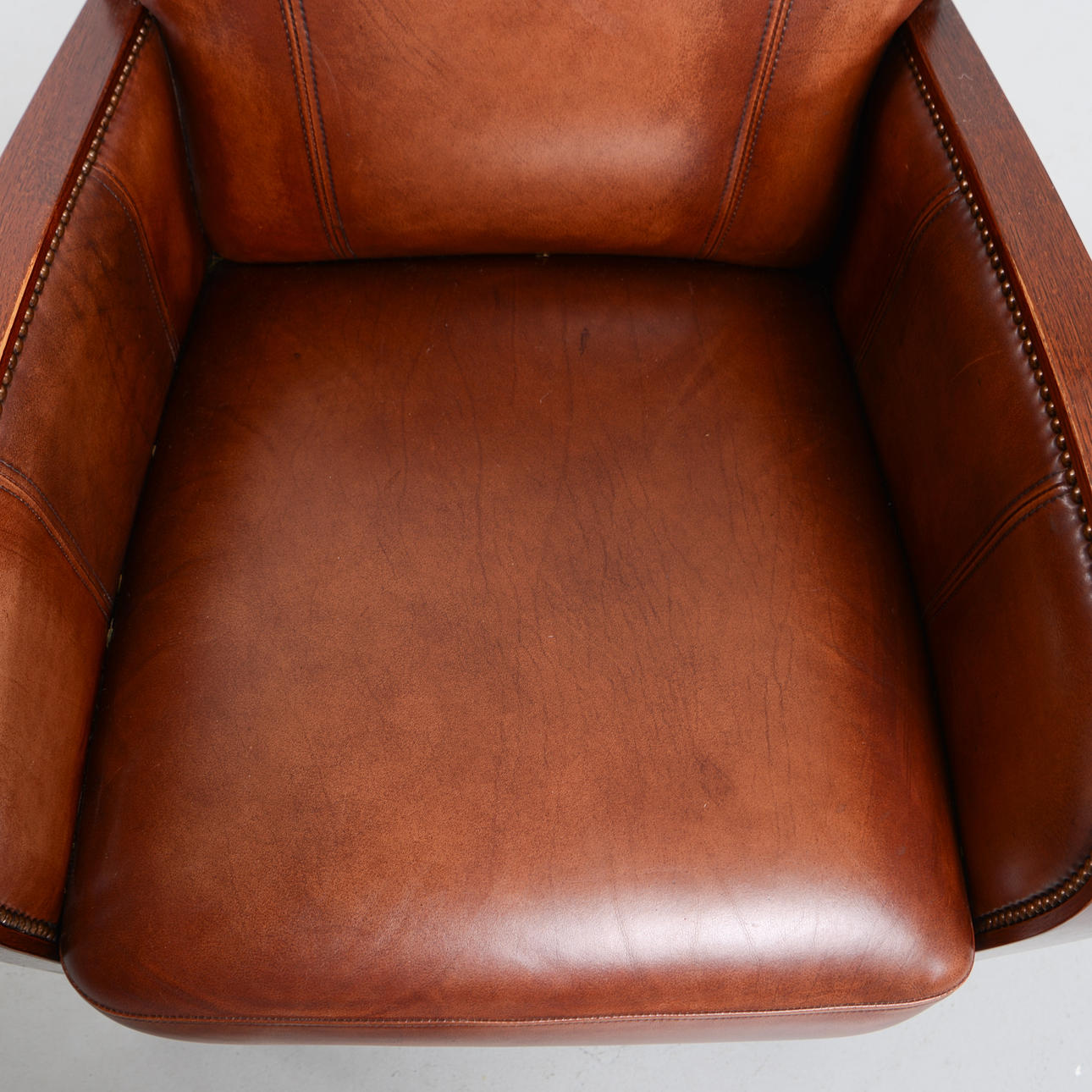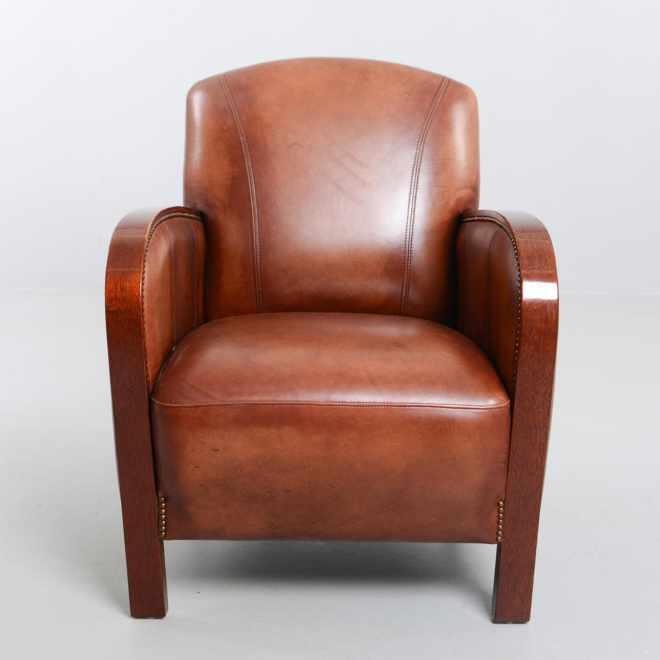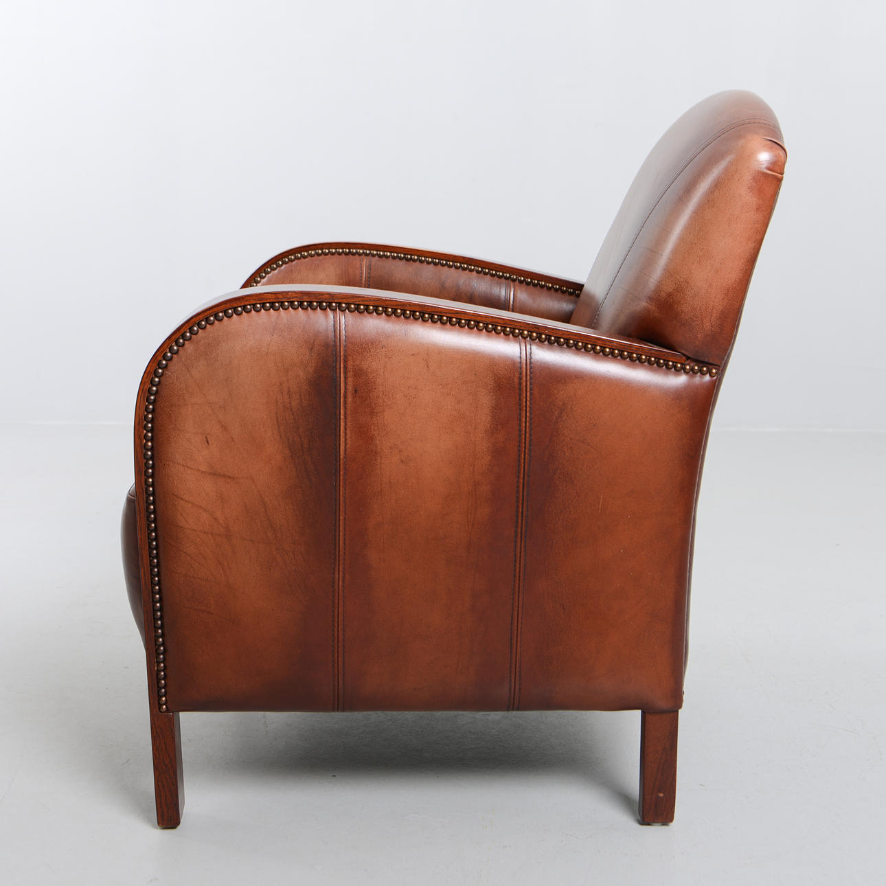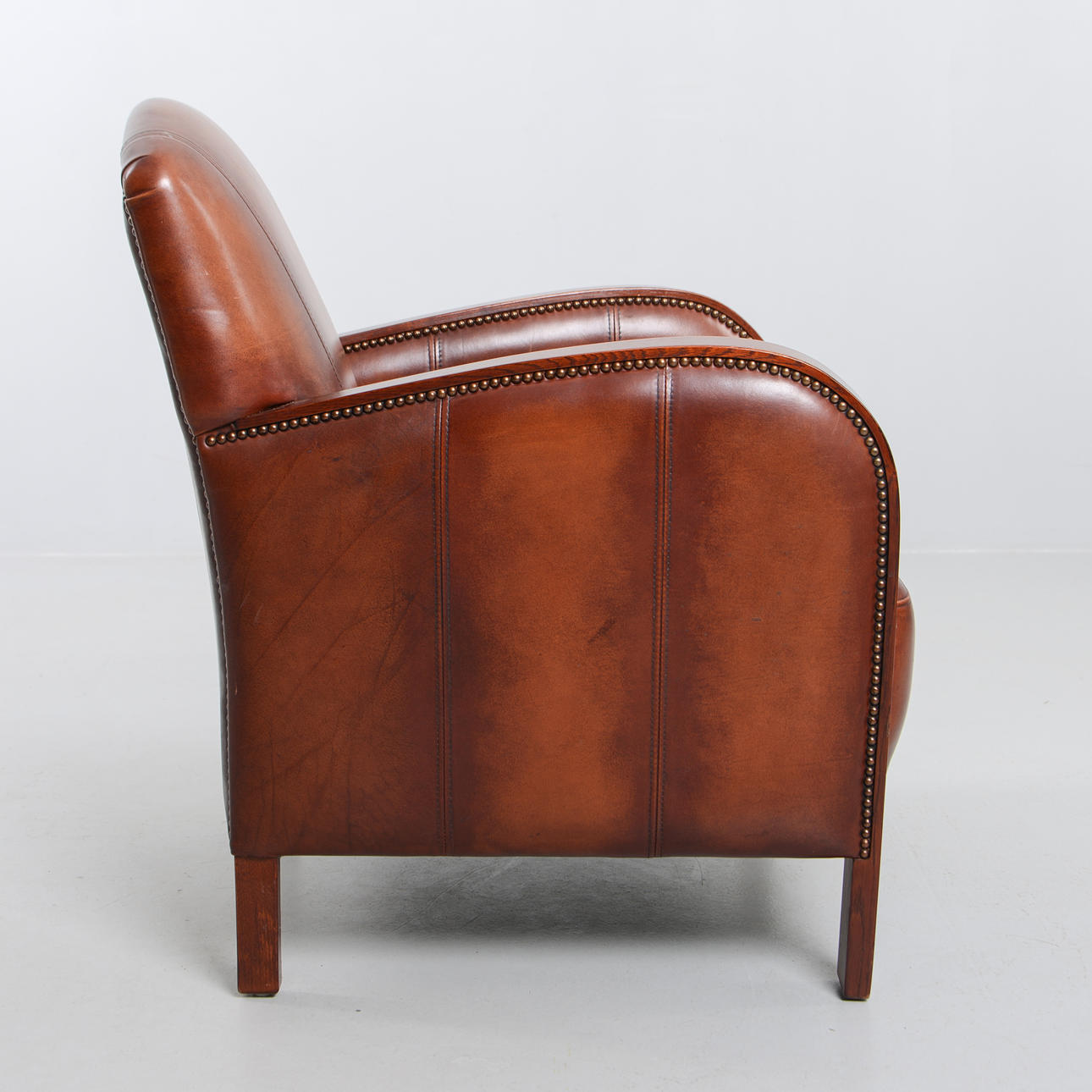 Leather armchair with pearl nail. Labeled. Height 90 cm. Seat height 42 cm.