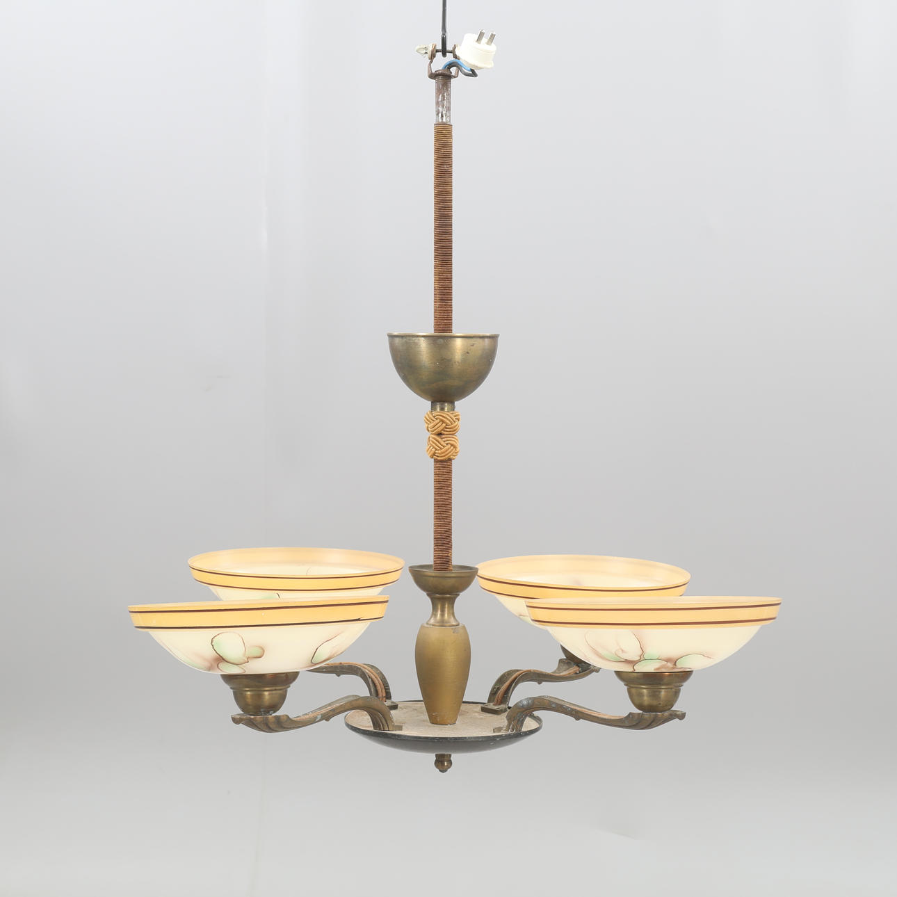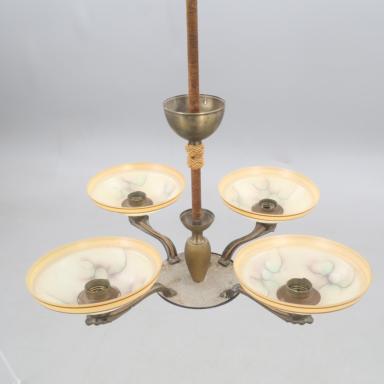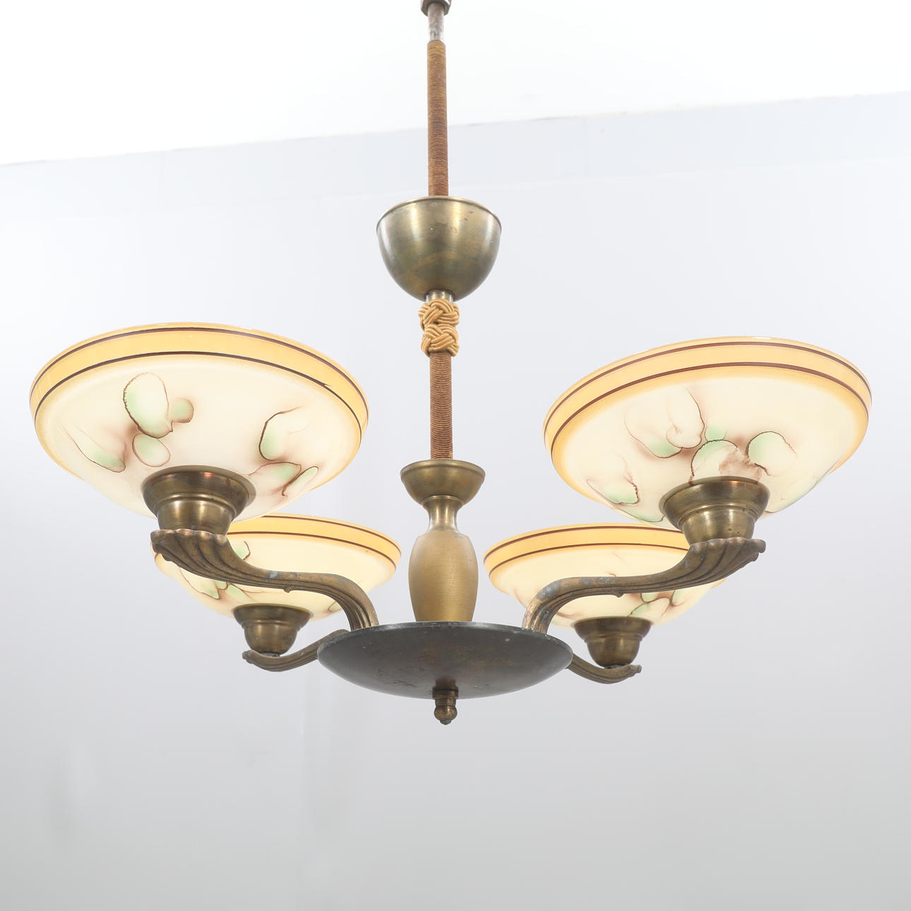 4 points of light Height approx. 60 cm Diameter approx. 58 cm Diameter of glass cups about 20 cm.