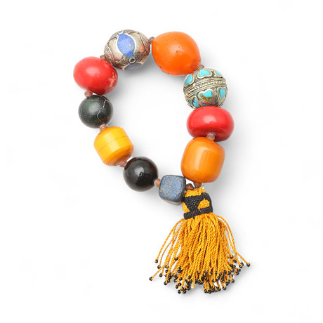 3451569. NECKLACE, round cut lapis lazuli and clasp and 2 beads in 18k gold.