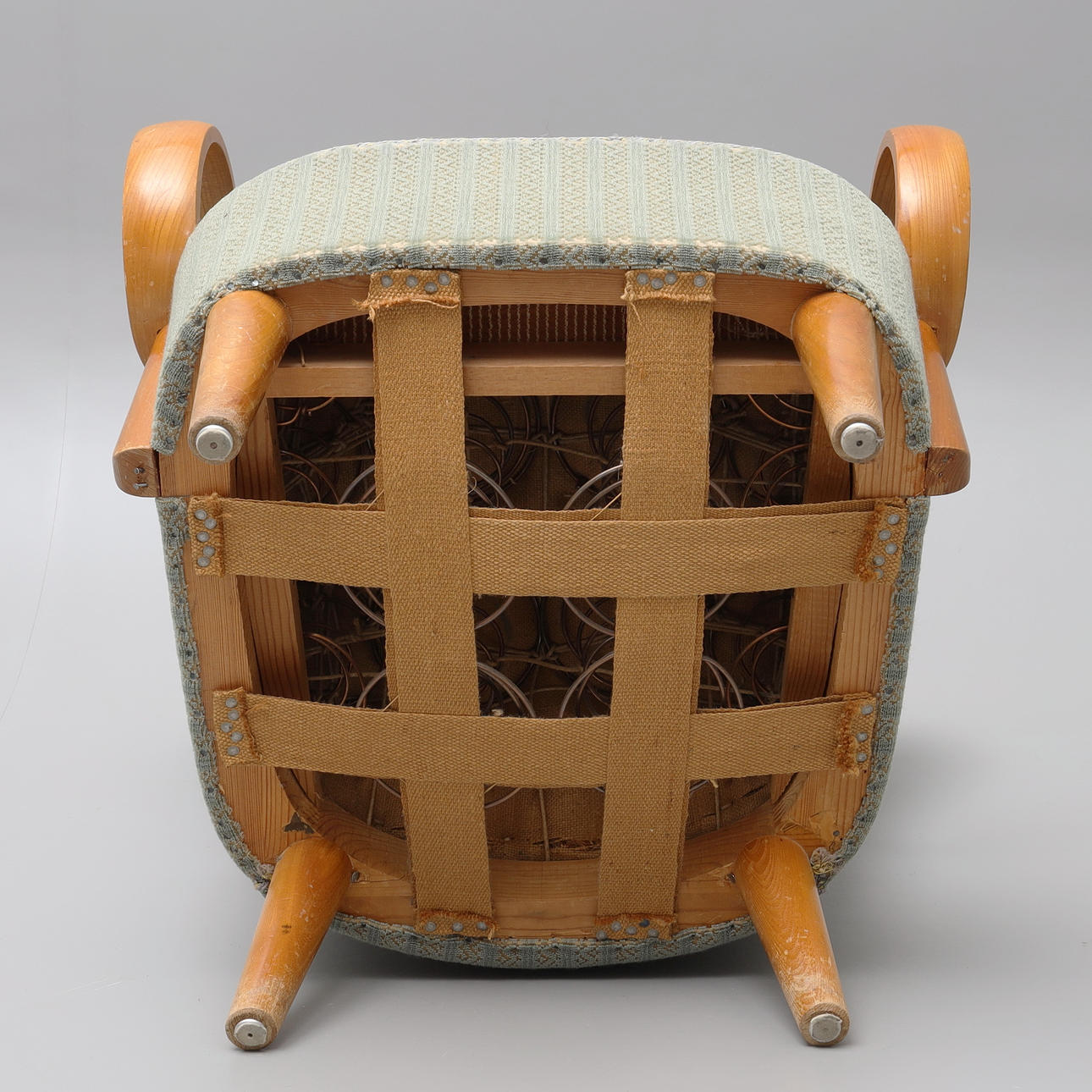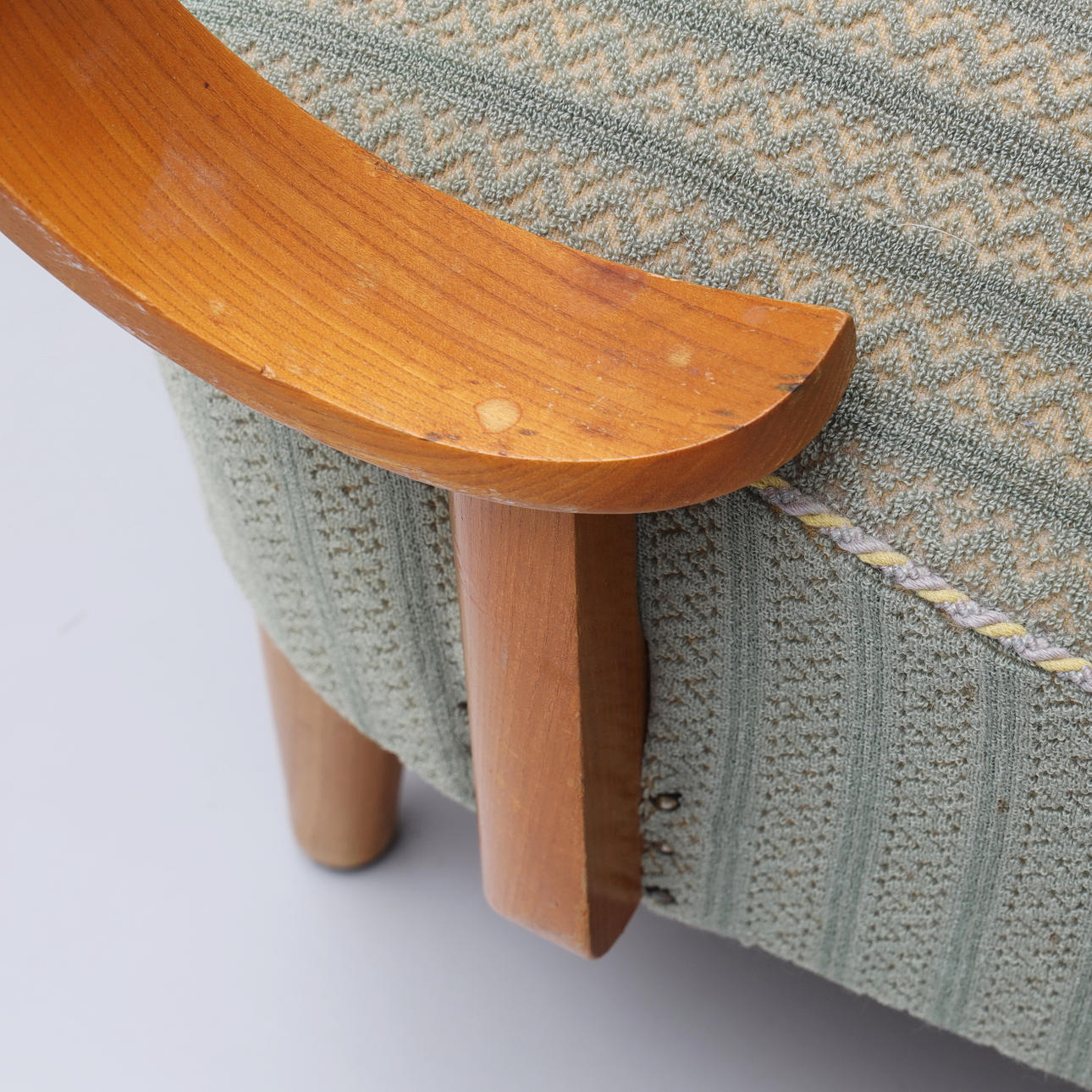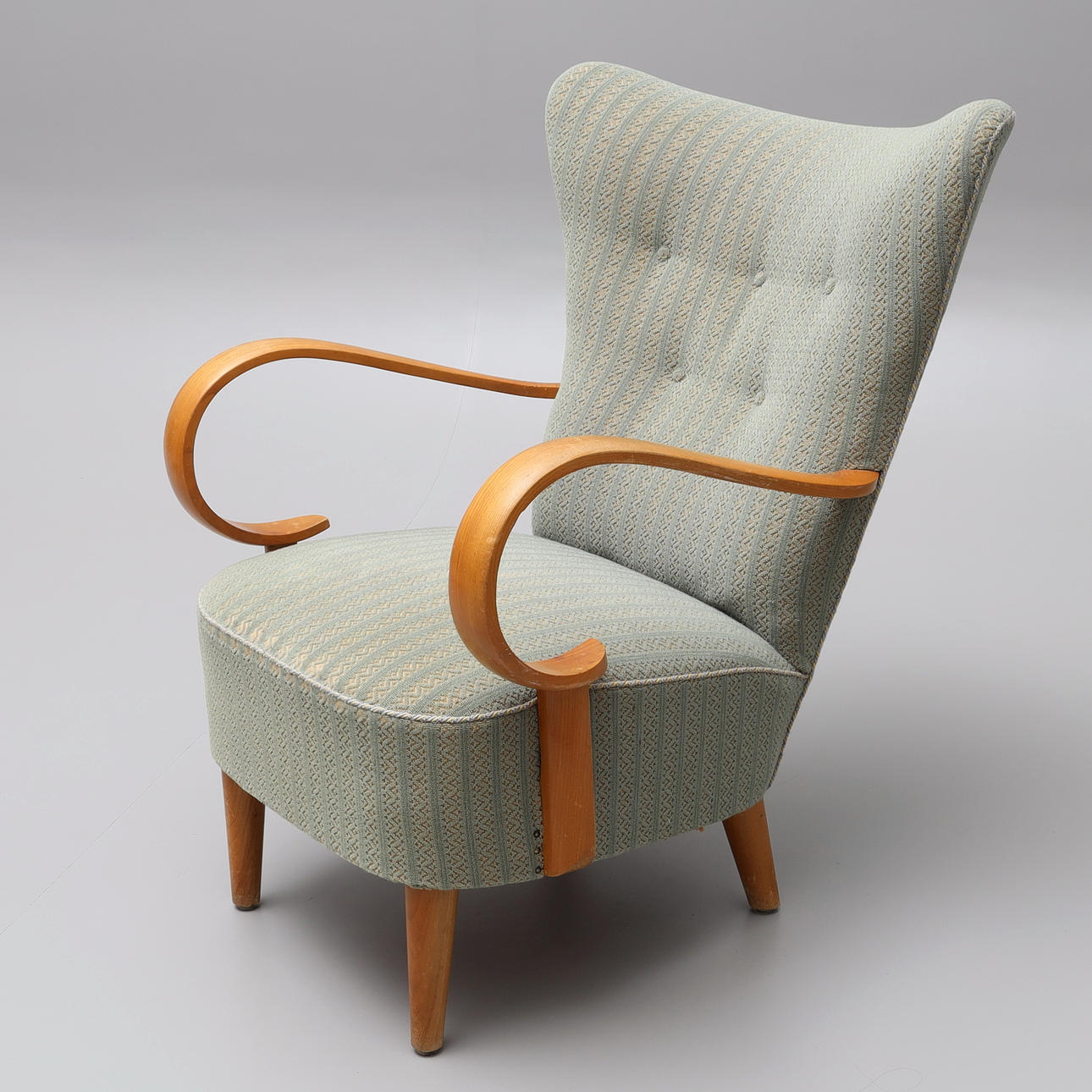 ARMCHAIR in original upholstery, upholstered, swivel armrests in beech. Height 93 cm, width 75 cm, depth approx. 75 cm.